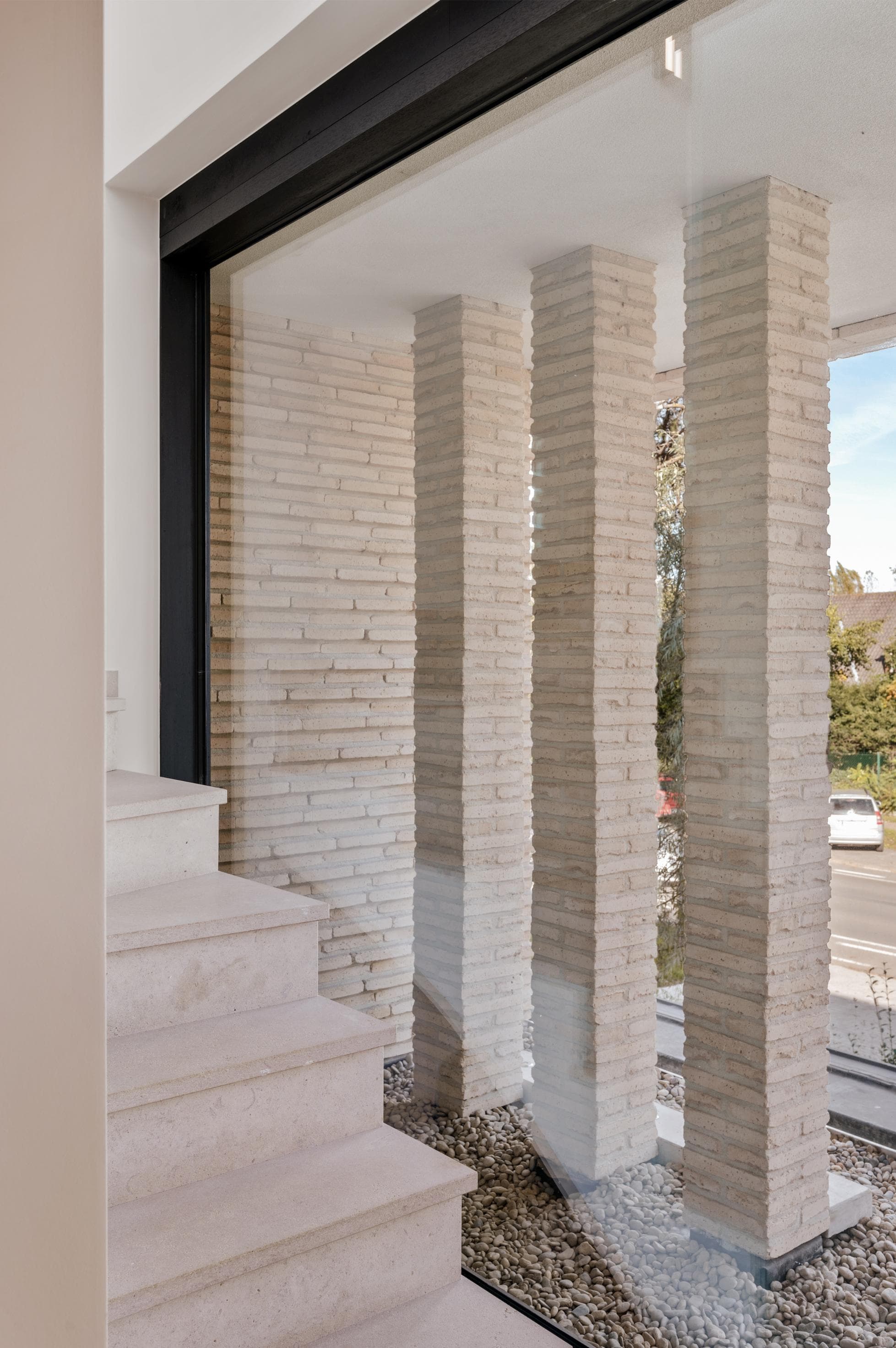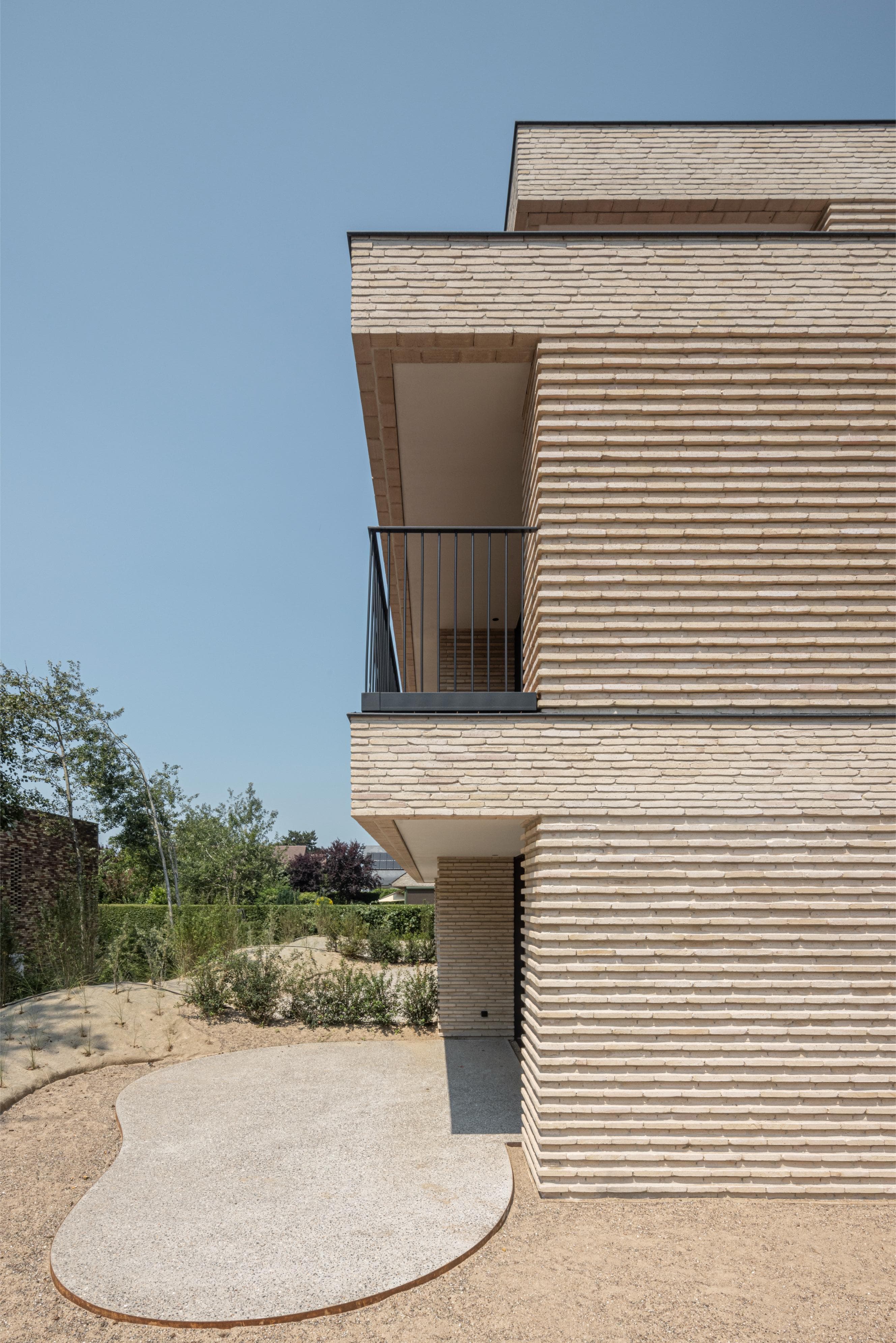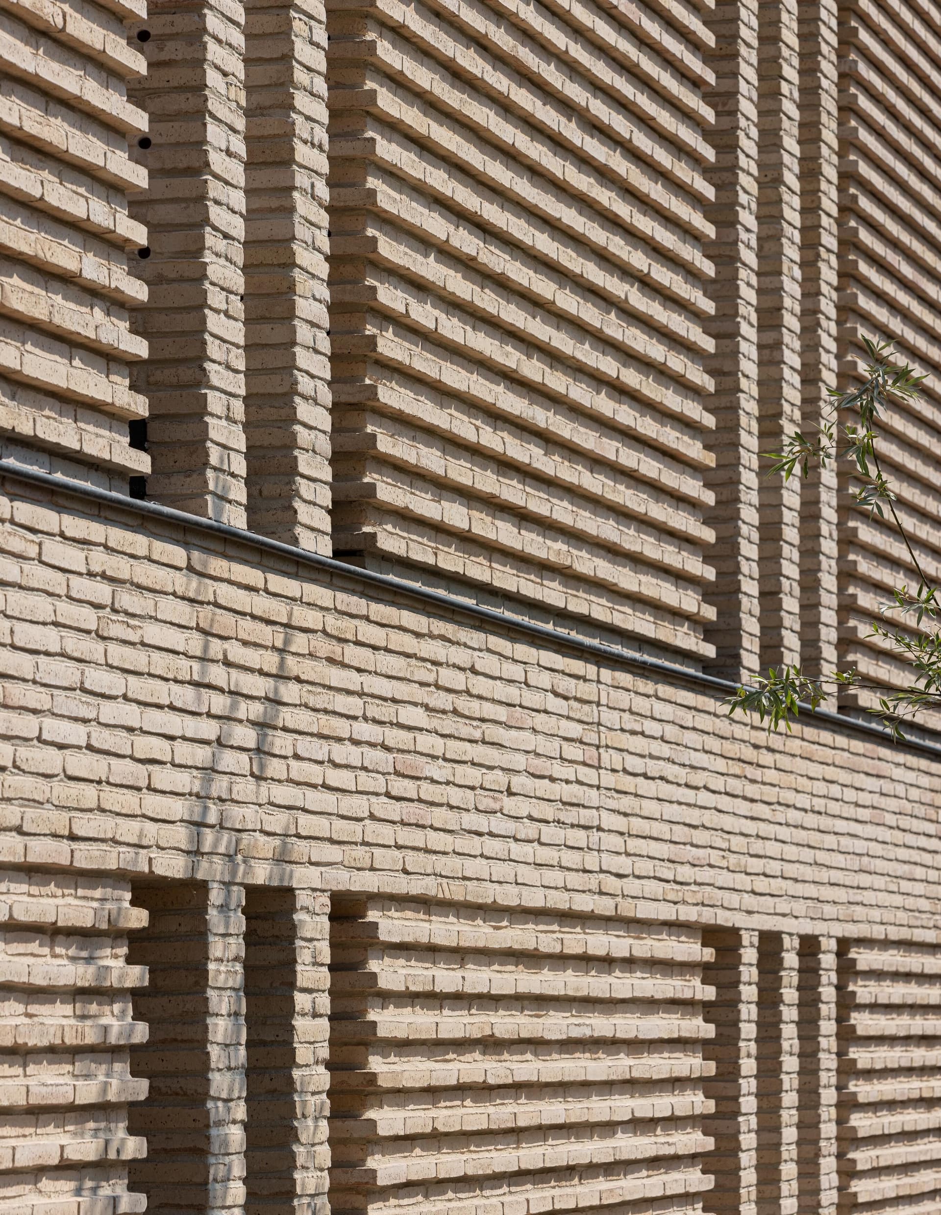 Hierdoor speelden bakstenen een belangrijke rol in de uitvoering van zijn architecturale ideeën. De gevel is een canvas van ingetogen afwisseling dankzij vlakke gevelborden, verspringende penanten (metselwerk rond bijv. ramen) en de zijdelingse massieve muren.