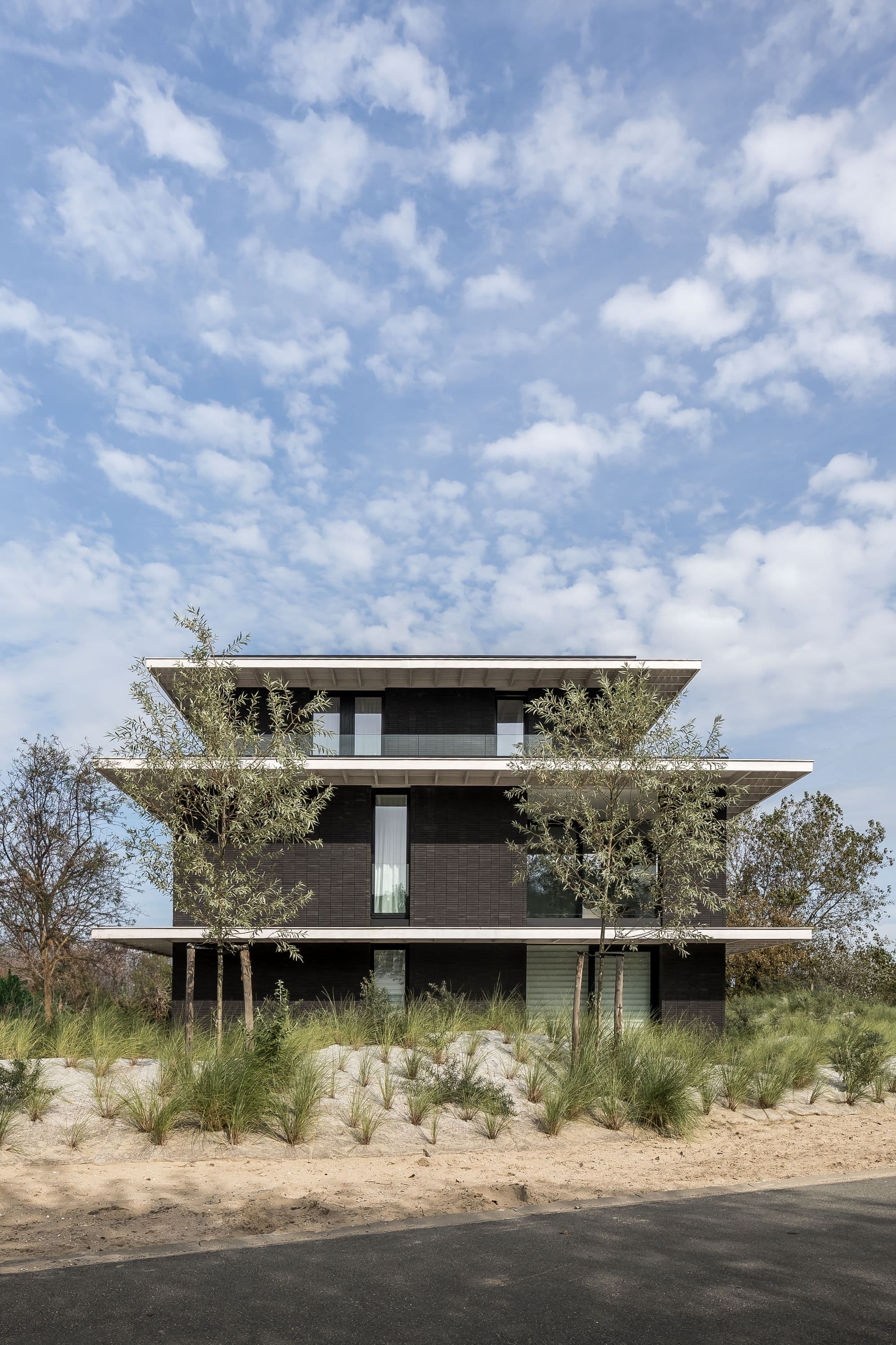 De gedachte achter deze opbouw en de gekozen materialen was: rust. De 2 volumes staan tegen de achterste bouwgrens aan. Zo ontstaat meer openheid aan de zuidkant. Daar bevinden zich de inpandige terrassen.
