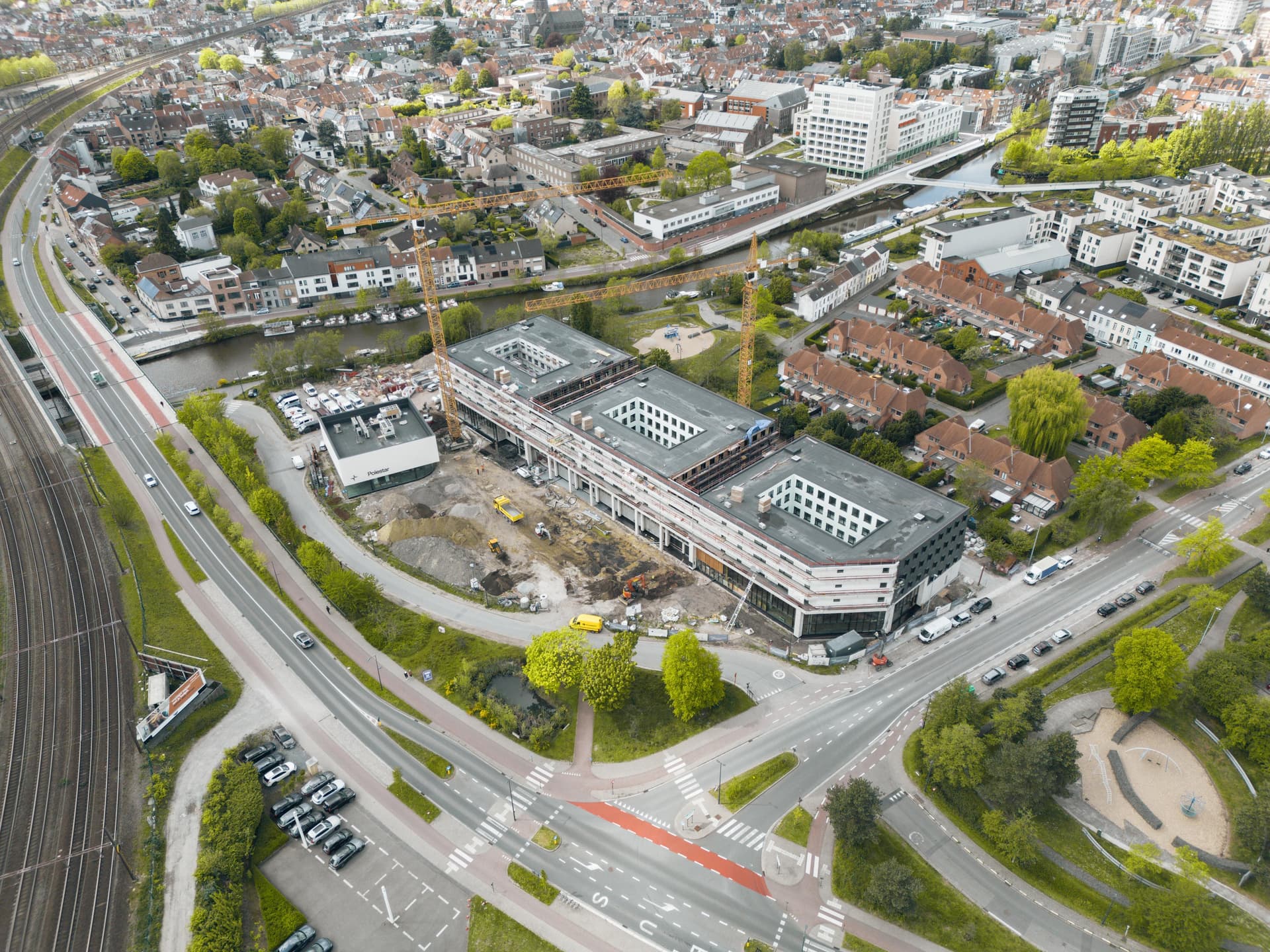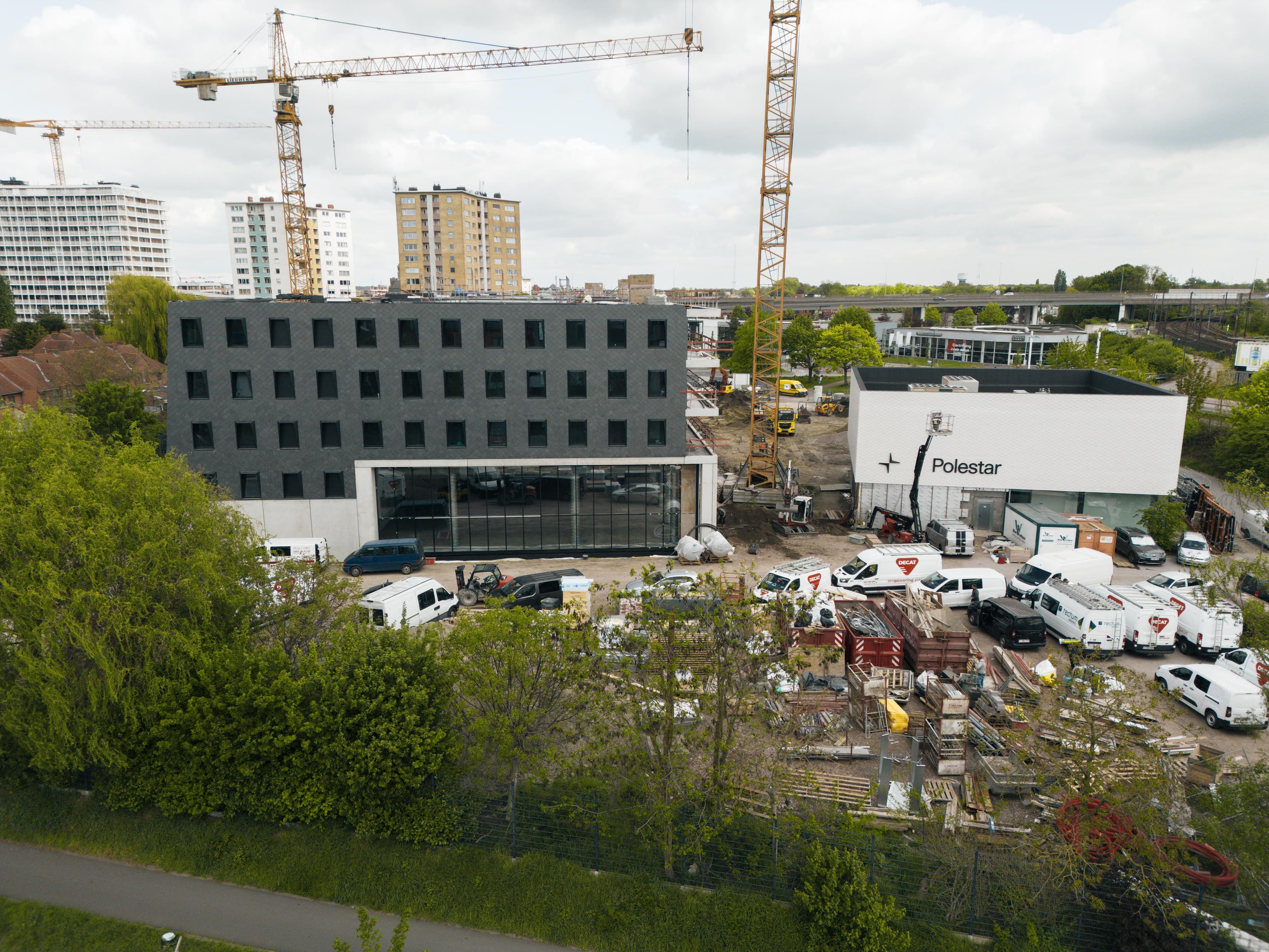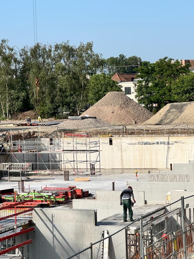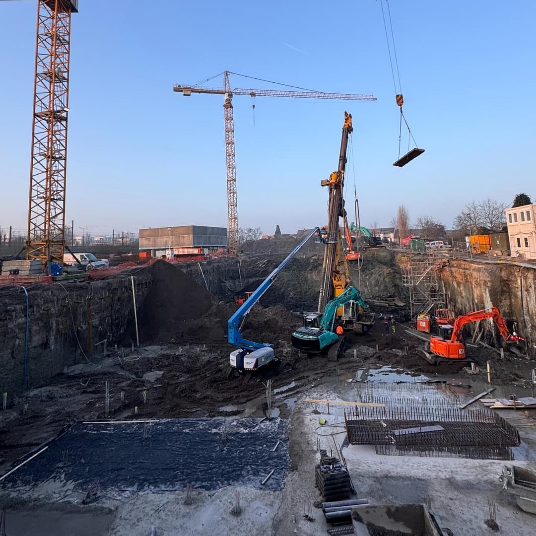 De bouwwerkzaamheden zijn in volle gang. Na de verhuizing van ACG naar een tijdelijke locatie aan de Brusselsesteenweg op 1,2 km afstand, zijn de sloopwerken gestart. De uitvoering is in handen van Deblaere, die ervaring heeft met soortgelijke projecten.