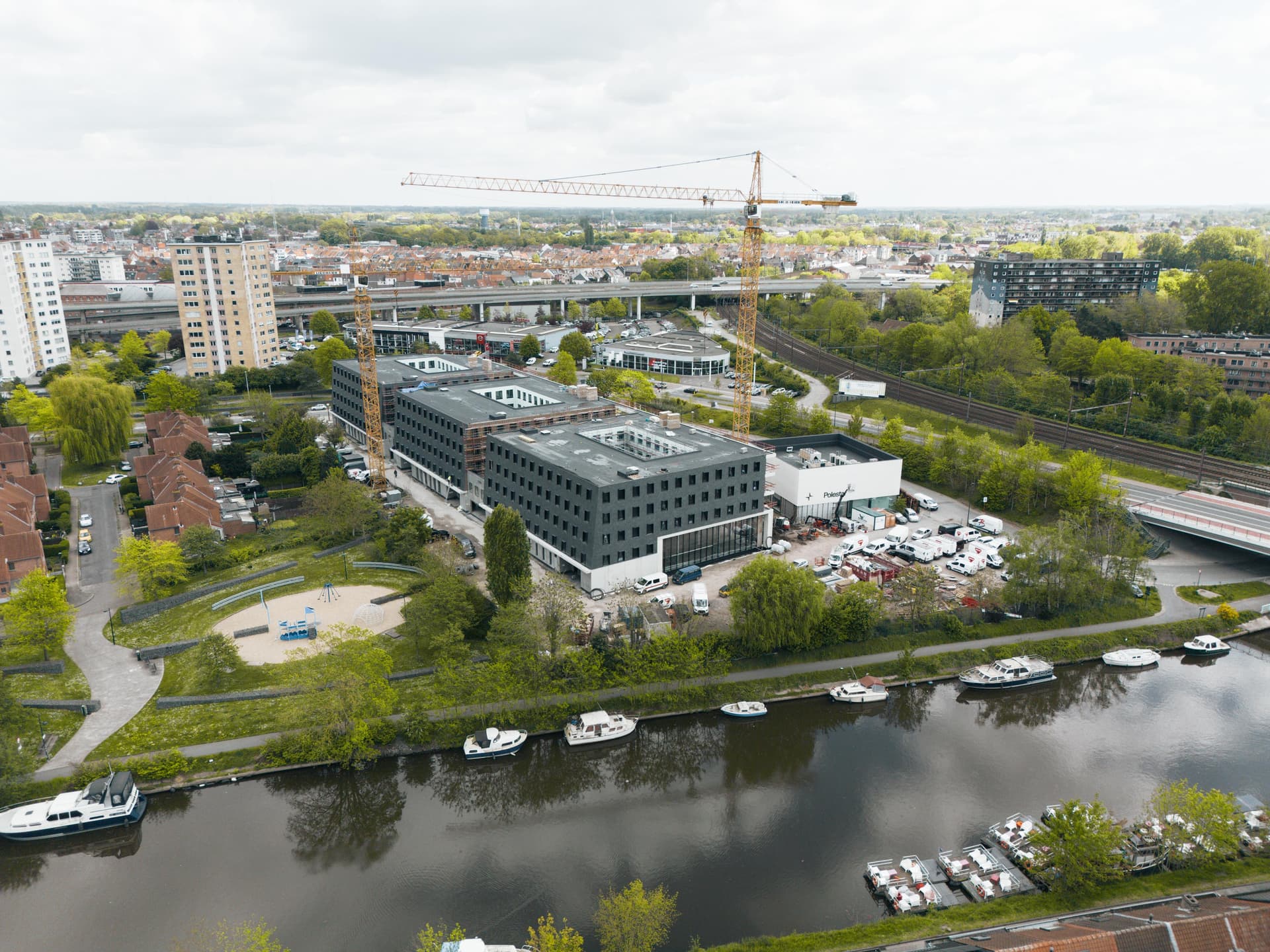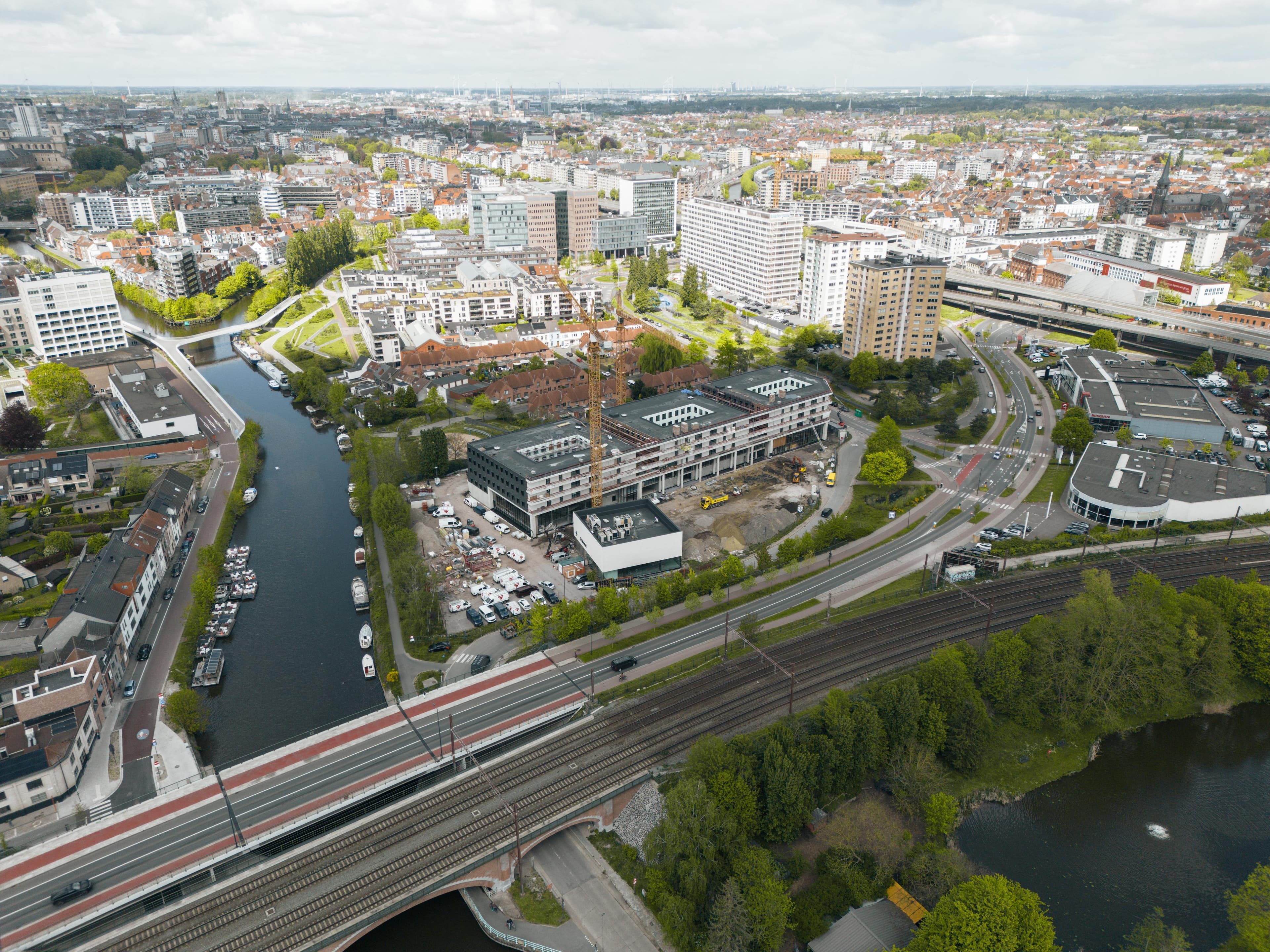 Het nieuwe complex, ontworpen door ATAMA architecten, wordt duurzaam met een duidelijke scheiding tussen werken en studeren. De zuidkant biedt toegang tot de showrooms, de werkplaats en de kantoren, met ondergrondse parkeergelegenheid. De achterliggende parkeerplaats wordt omgevormd tot een groene oase met verbinding naar de Schelde en de nabijgelegen fietsbrug. De studentenkamers, verborgen achter een 125 meter lange groenwand, geven de voorgevel een rustige aanblik, terwijl de het Sint-Pietersplein slechts 5 minuten fietsen is.