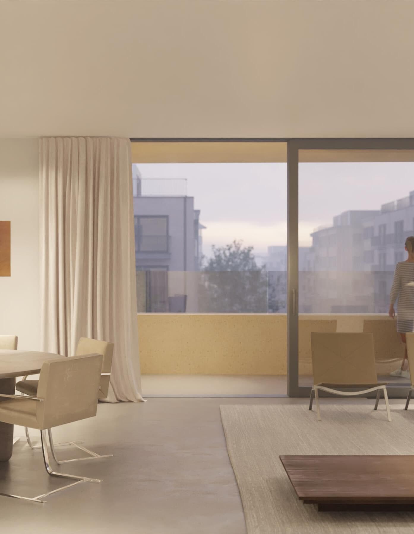 Element Architecten staat bekend om hun warme minimalisme en subtiele verfijning – vaak omschreven als architectuur met een Japanse finesse. Ook in Residentie Anni Albers tillen zij een ogenschijnlijk eenvoudig hoekgebouw naar een hoger niveau, dankzij zorgvuldige detaillering, evenwichtige proporties en geraffineerde accenten.