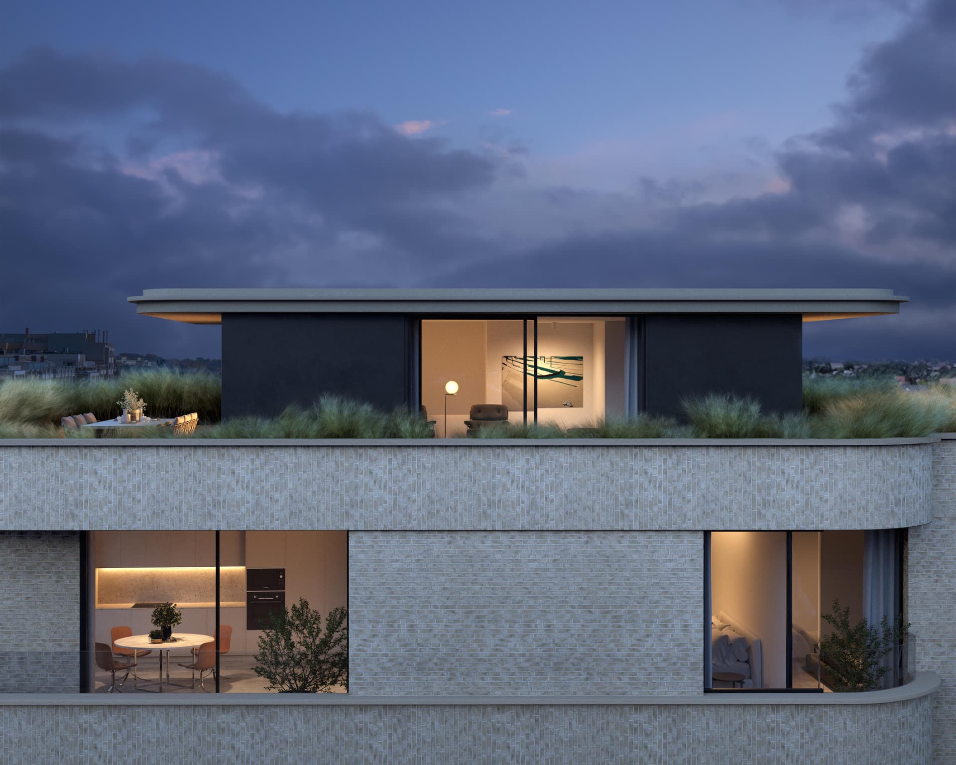 Per bouwlaag is er één appartement voorzien, wat garant staat voor rust en privacy. In totaal omvat het project vier appartementen, een duplex-penthouse en een handelsgelijkvloers – een zeldzame combinatie van architecturale kwaliteit en doordachte indeling op een toplocatie.