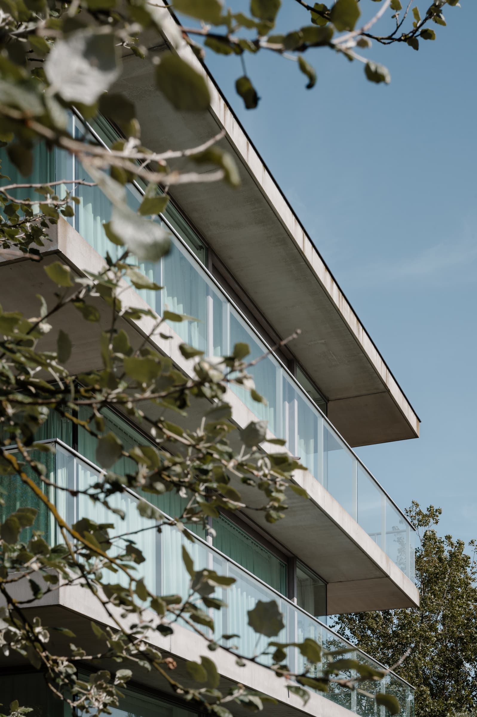 De residentie omvat vijf exclusieve wooneenheden, elk ontworpen met een uitgesproken aandacht voor ruimtelijke helderheid, perspectief en lichtwerking. De materialisatie speelt hierin een centrale rol. De combinatie van sierbeton, zacht geaderde houtaccenten en zorgvuldig geplaatste schaduwvoegen creëert een rustige, monolithische basis. Het geheel wordt gedragen door de ingetogen precisie die zo kenmerkend is voor Govaert & Vanhoutte Architecten: minimalistische detaillering, zuivere aansluitingen en een maximale leesbaarheid van de architecturale lijnen.