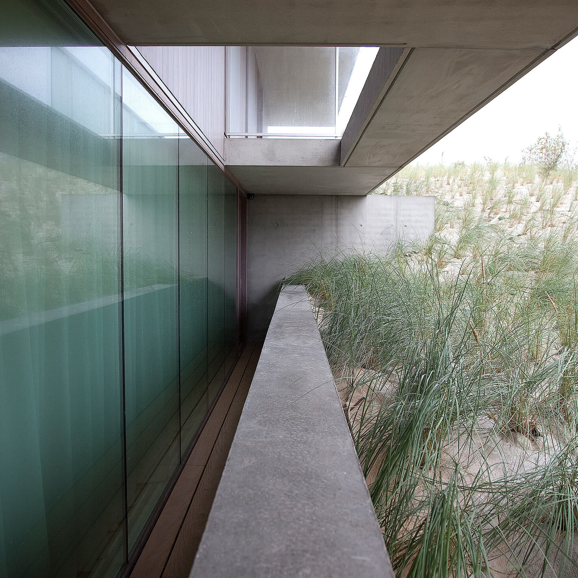 Het is subtiel ingeplant op de duin. Als het ware ingeschoven. Het houdt rekening met de topografie en behoudt zoveel mogelijk een natuurlijk aandoend reliëf.