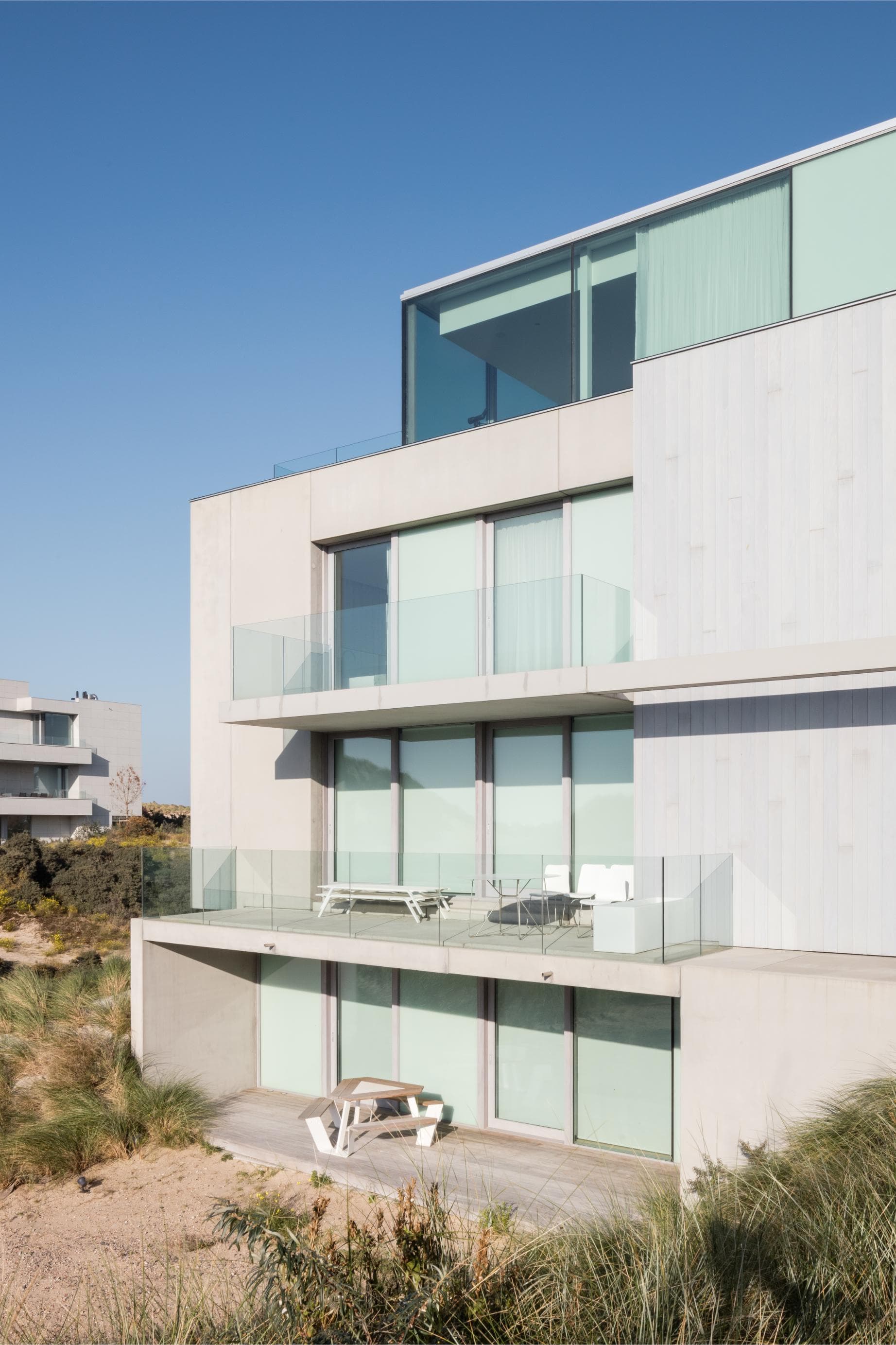 Door zijn beperkte schaal en zorgvuldige inplanting blijft de ruimtelijke doorstroming in het woonduinengebied maximaal behouden. Het gebouw voegt zich in het landschap, eerder dan ermee te concurreren.