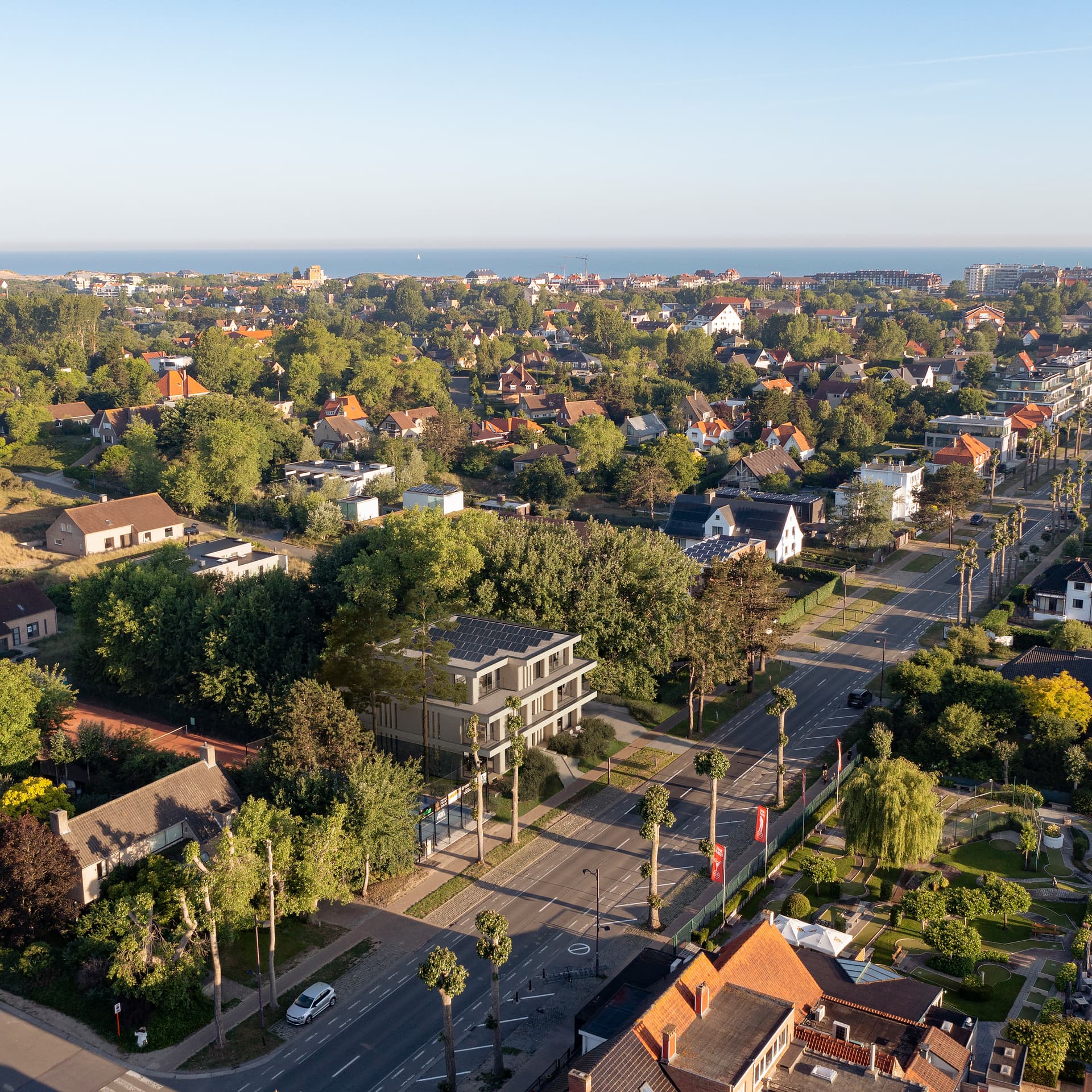 Strakke lijnen, heldere volumes en ingetogen elegantie: Residentie Frank Lloyd Wright, een ontwerp van CAAN Architecten, belichaamt de essentie van modernistische architectuur. Gelegen aan de statige Leopold II-laan, precies tussen Oostduinkerke-bad en het dorp, vormt deze residentie een rustige maar centrale uitvalsbasis – pal tegenover de sfeervolle tennisclub.