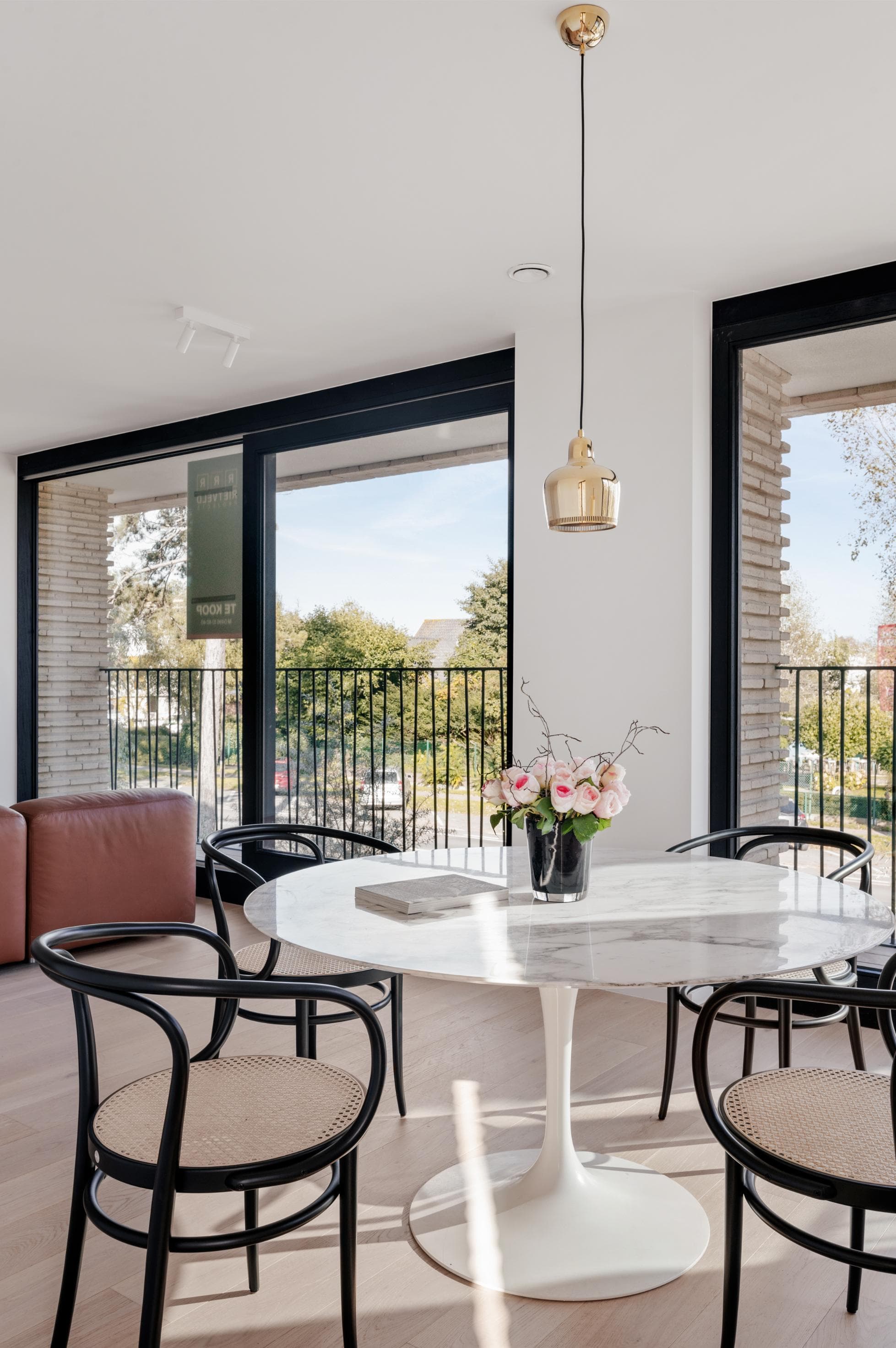 Binnen dit doordachte project is nog 1 laatste hoekappartement met twee slaapkamers beschikbaar. Dankzij de zuidwestelijke oriëntatie baadt het interieur in natuurlijk licht. De afwerking is van topniveau, met onder andere een Bulthaup B3-keuken die functionaliteit en esthetiek perfect verenigt.