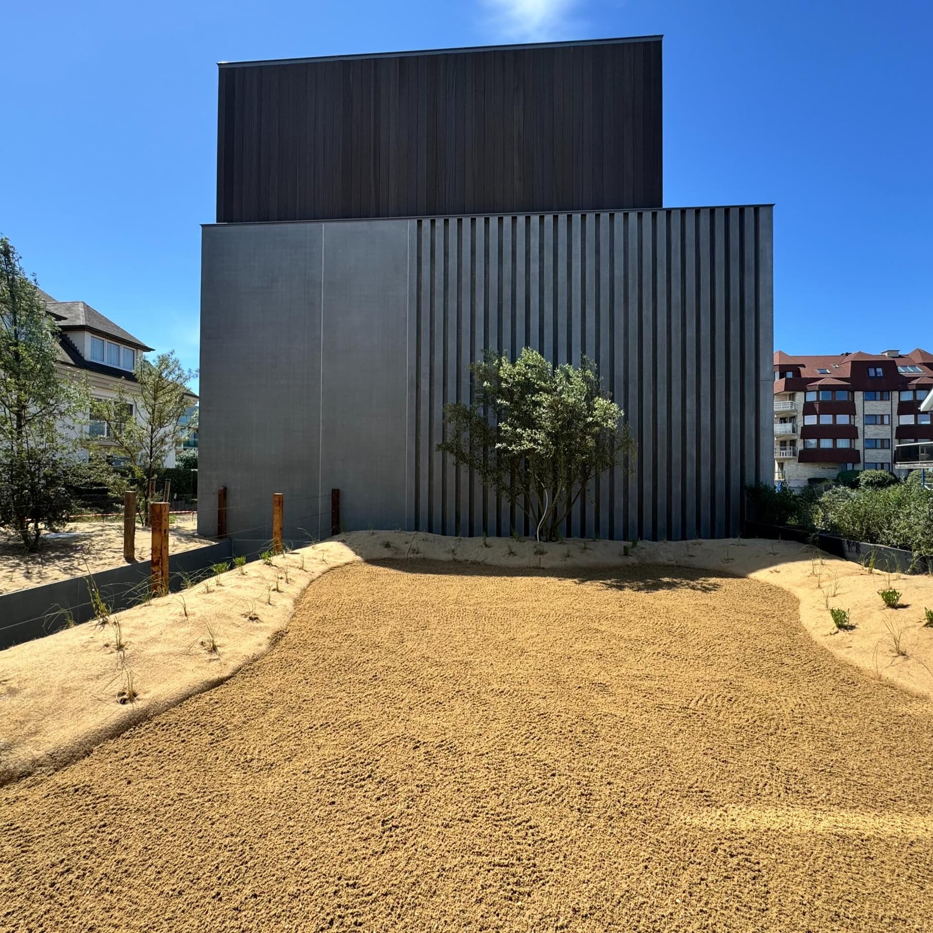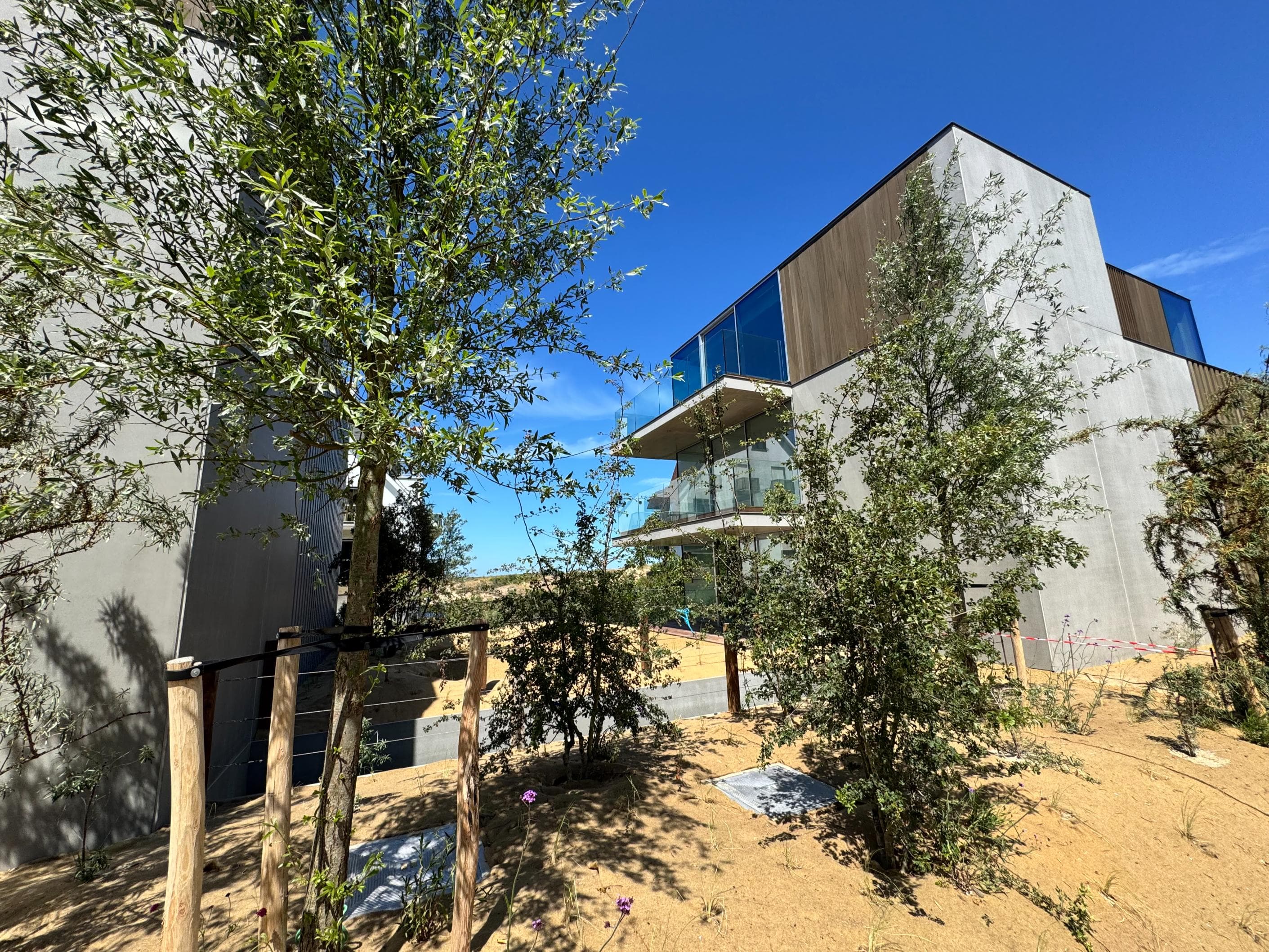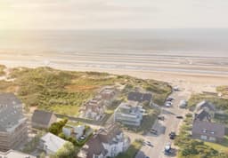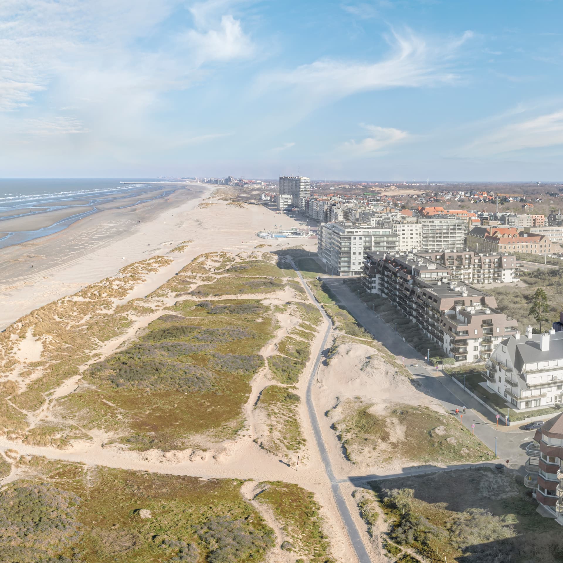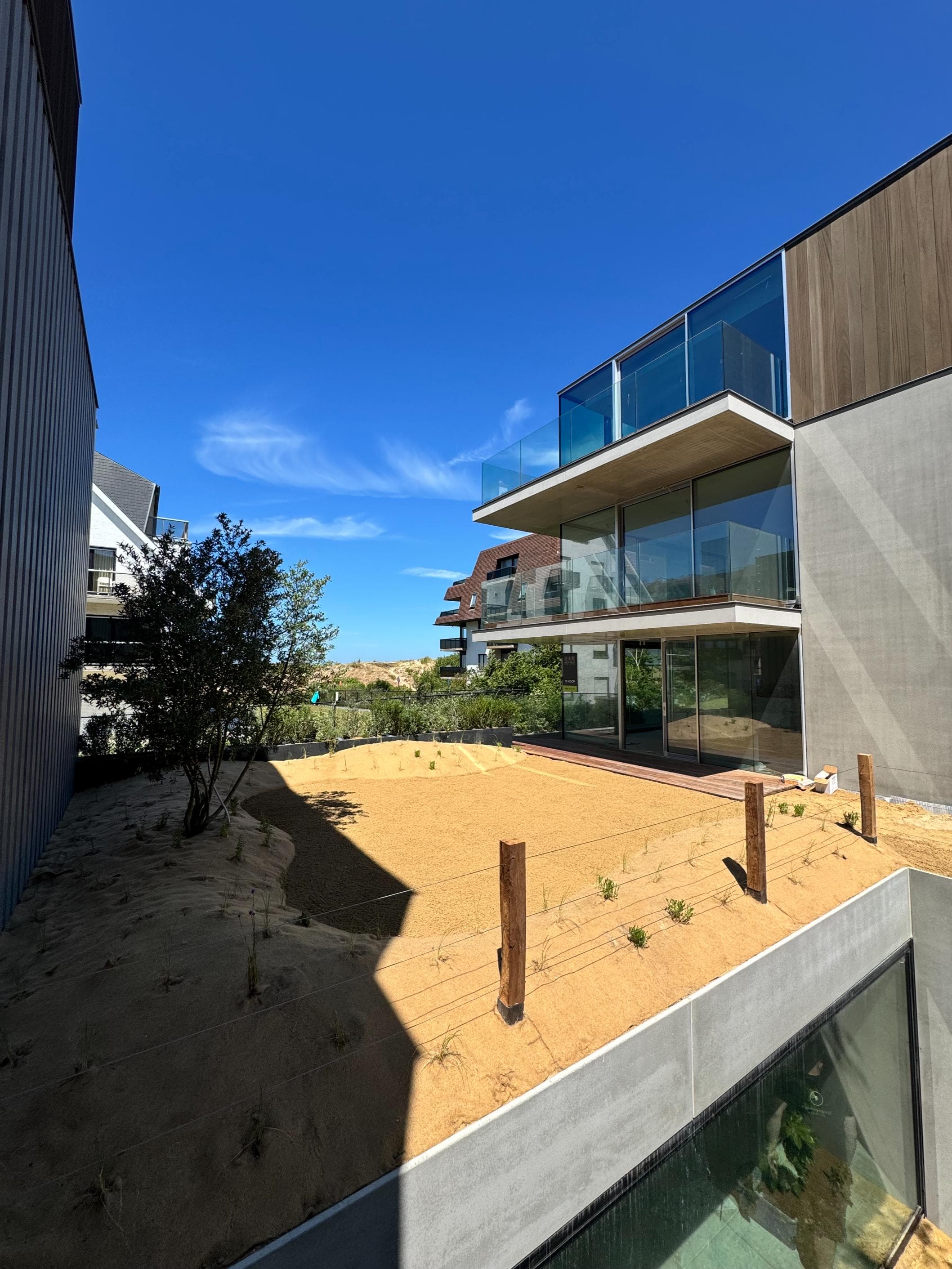 Het appartement ligt ingebed tussen twee nieuw aan te leggen duinbermen. Dankzij de doordachte positionering van het gebouw en de verfijnde verticale betonaccenten geniet u hier van maximale privacy en architecturale sereniteit.