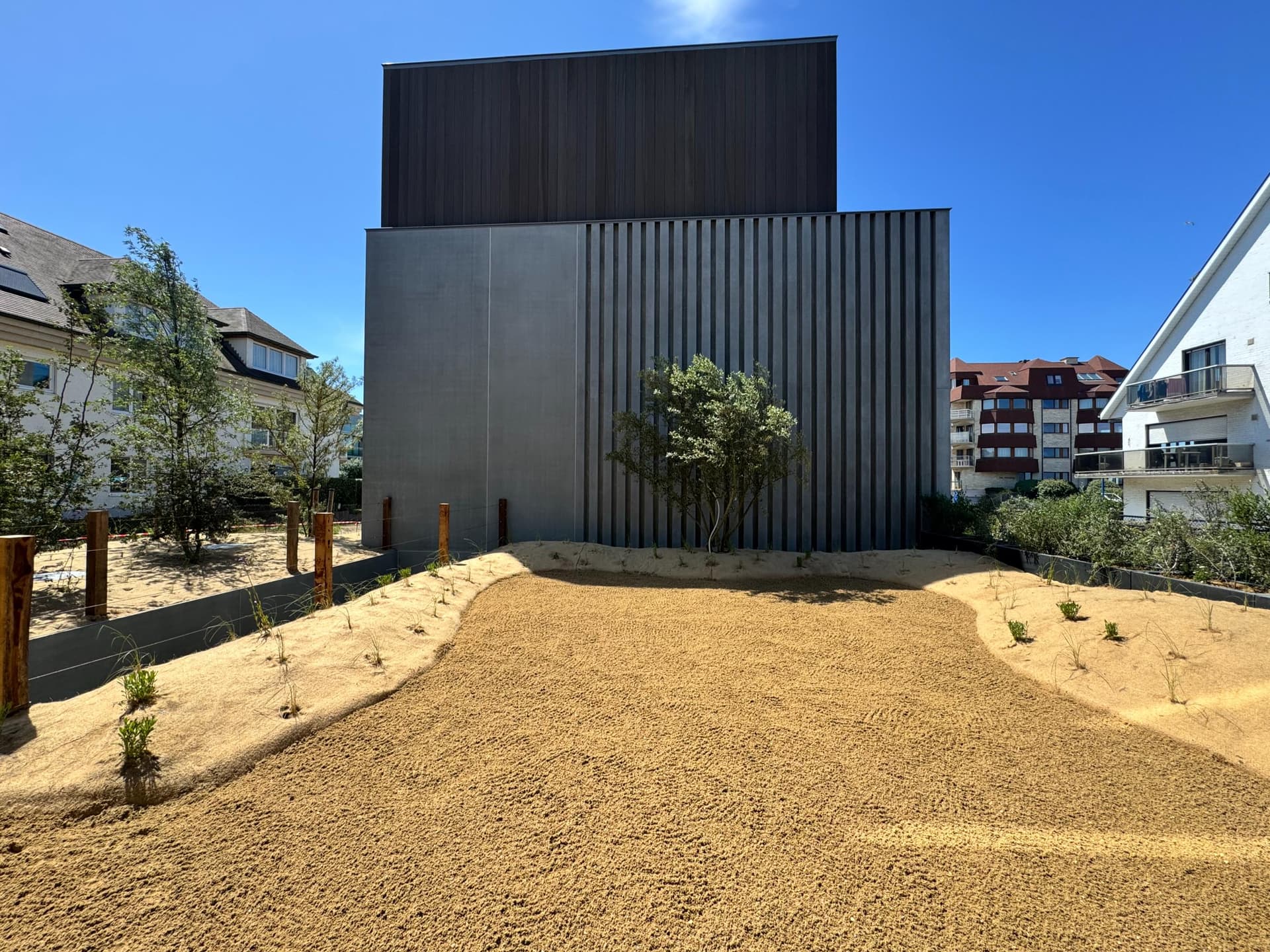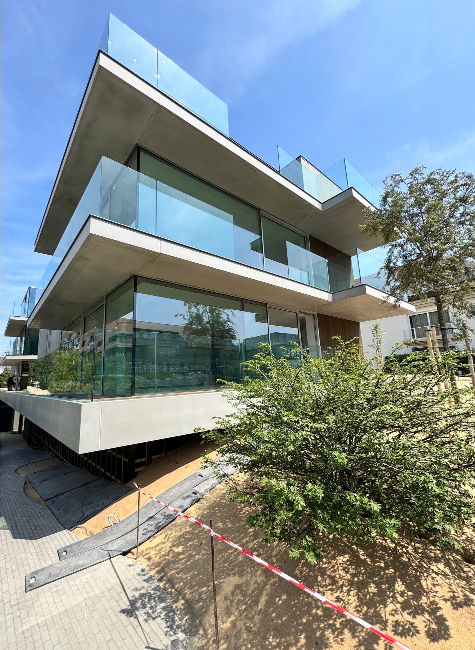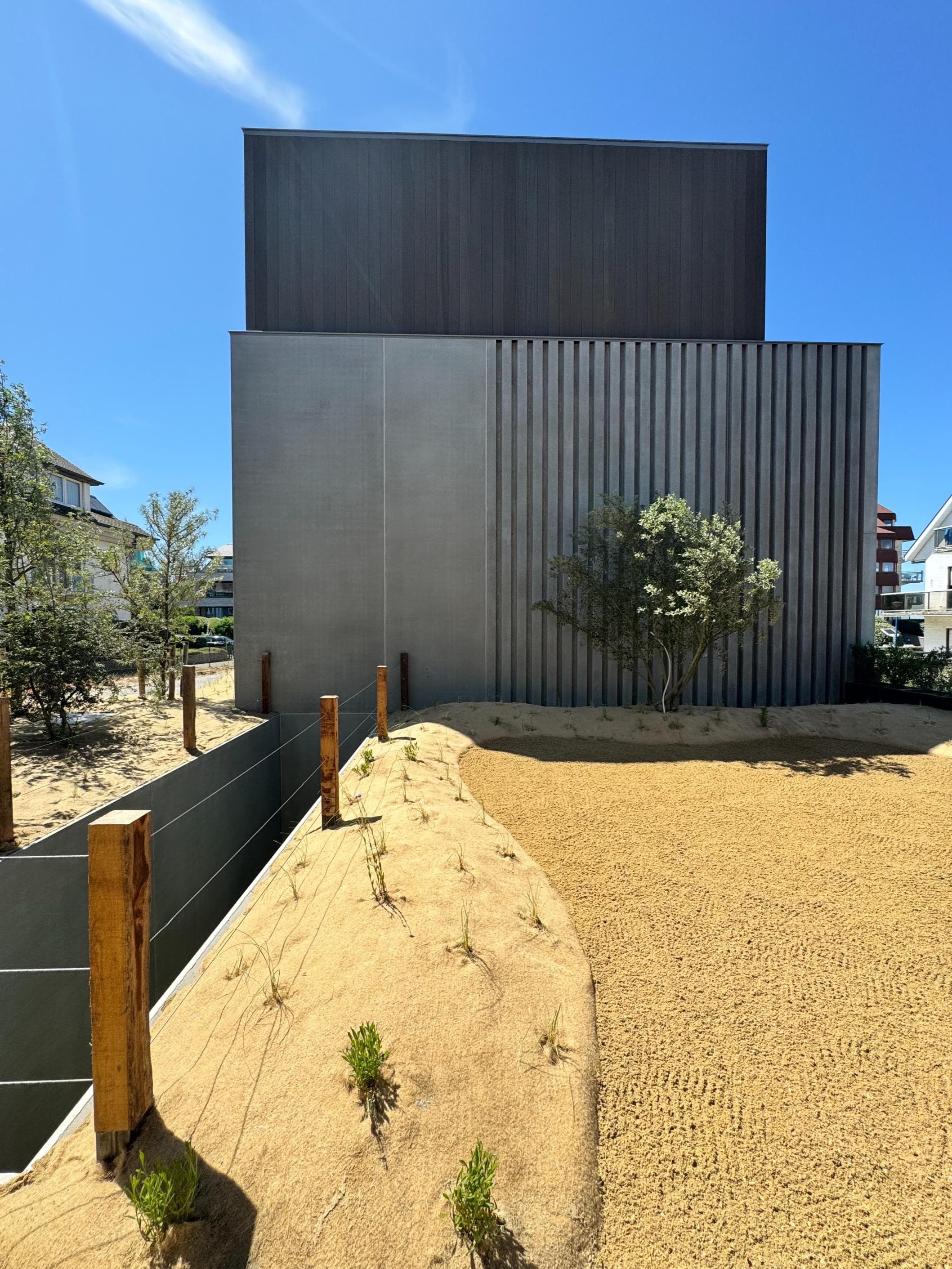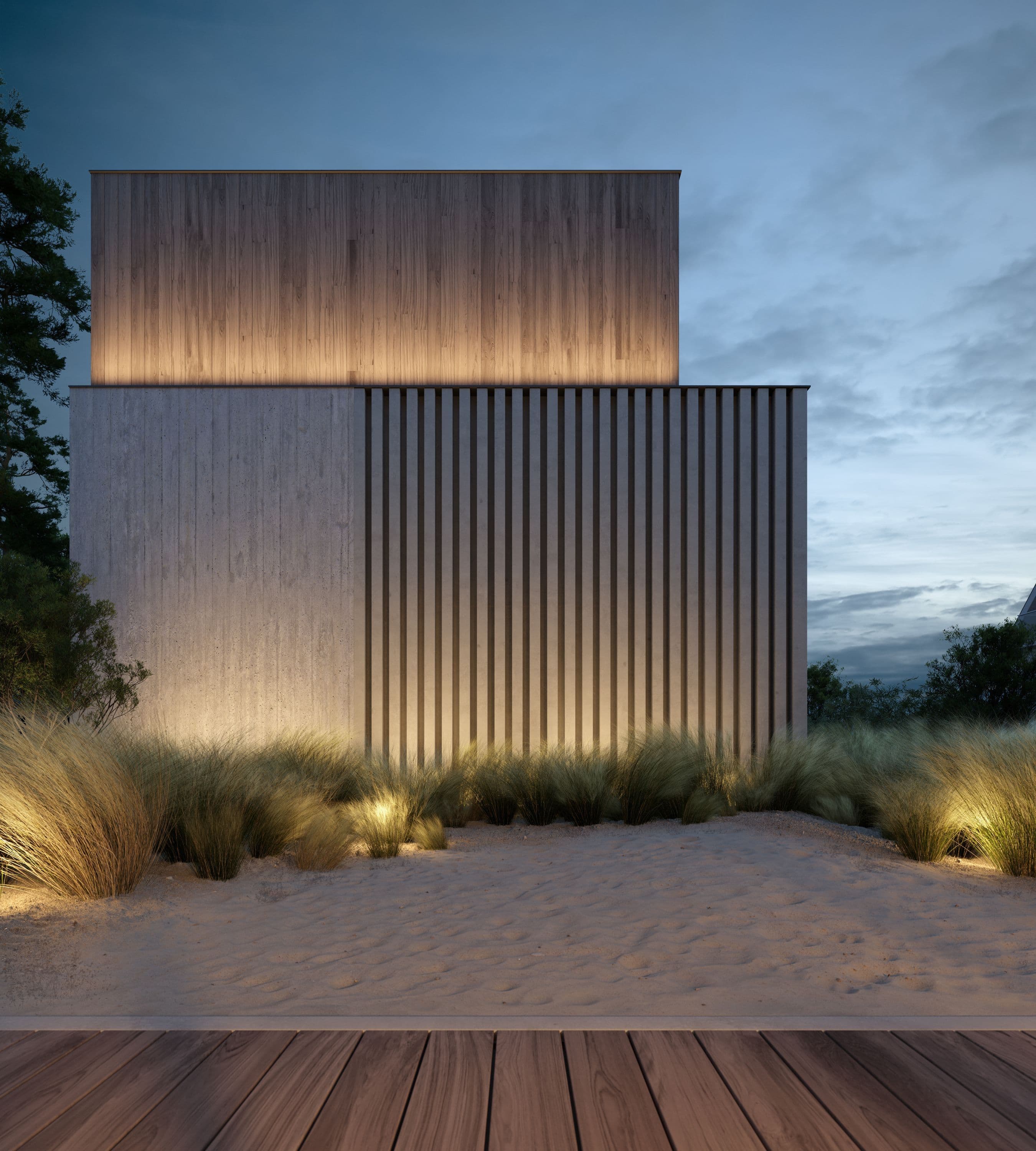 Het appartement ligt ingebed tussen twee nieuw aan te leggen duinbermen. Dankzij de doordachte positionering van het gebouw en de verfijnde verticale betonaccenten geniet u hier van maximale privacy en architecturale sereniteit.