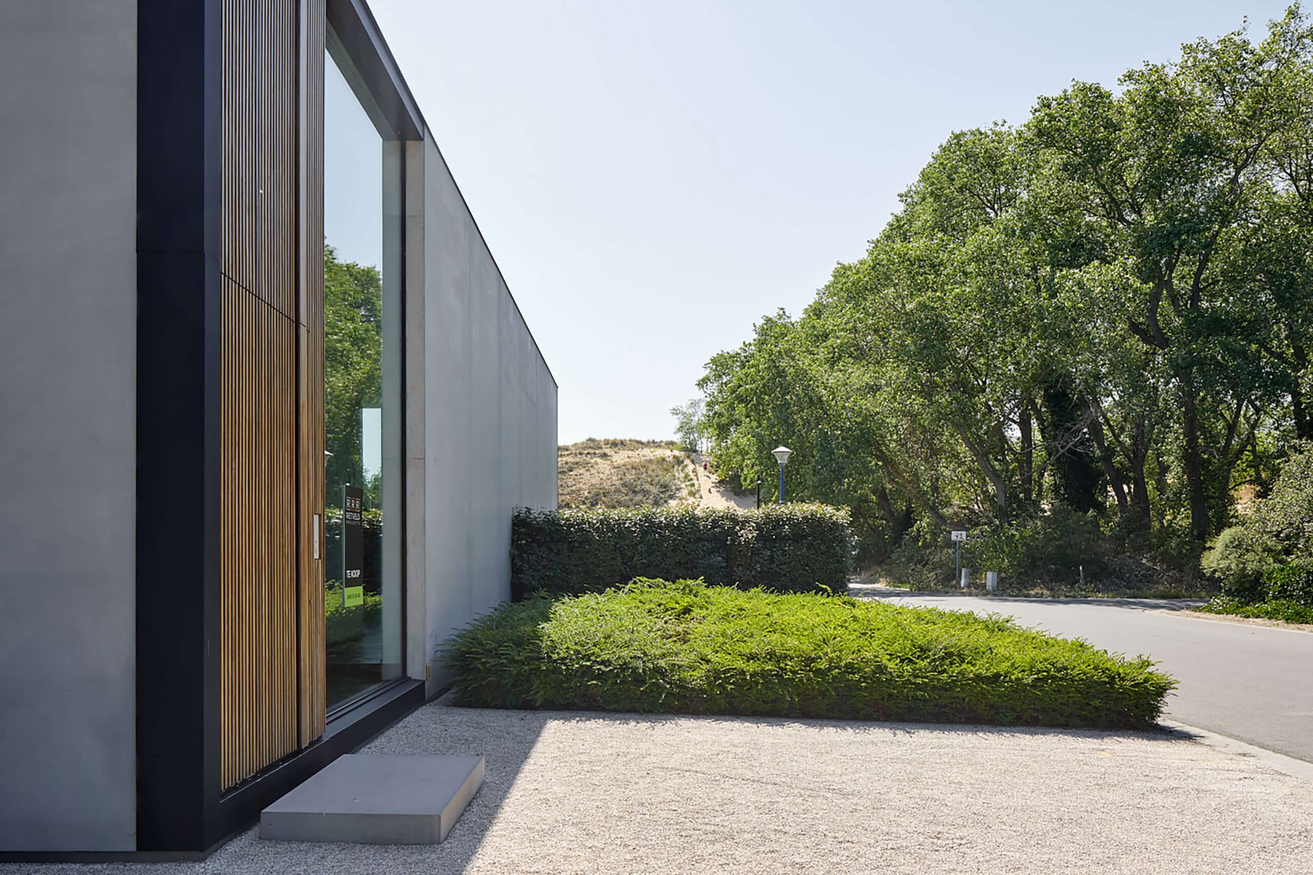 Aan de buitenkant lijkt het een gesloten eenheid van beton. Maar eenmaal binnen zorgt met name het split level systeem voor een gevoel van ruimte, terwijl het ook de slaapvertrekken aan het zicht onttrekt. HOUSE MC is een eigentijdse woning aan de Stuifduin ‘De witte Burg’ die is ontworpen van binnenuit. Het bescheiden perceel grenst aan een openbaar speeltuintje en de combinatie van de oriëntatie en privacy vroeg om nogal wat denkwerk.
