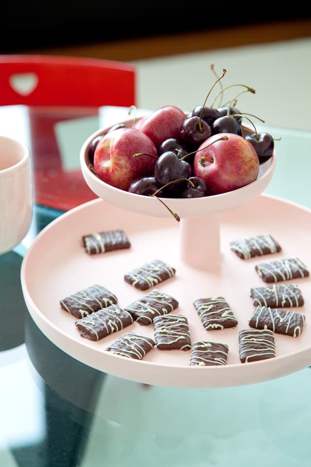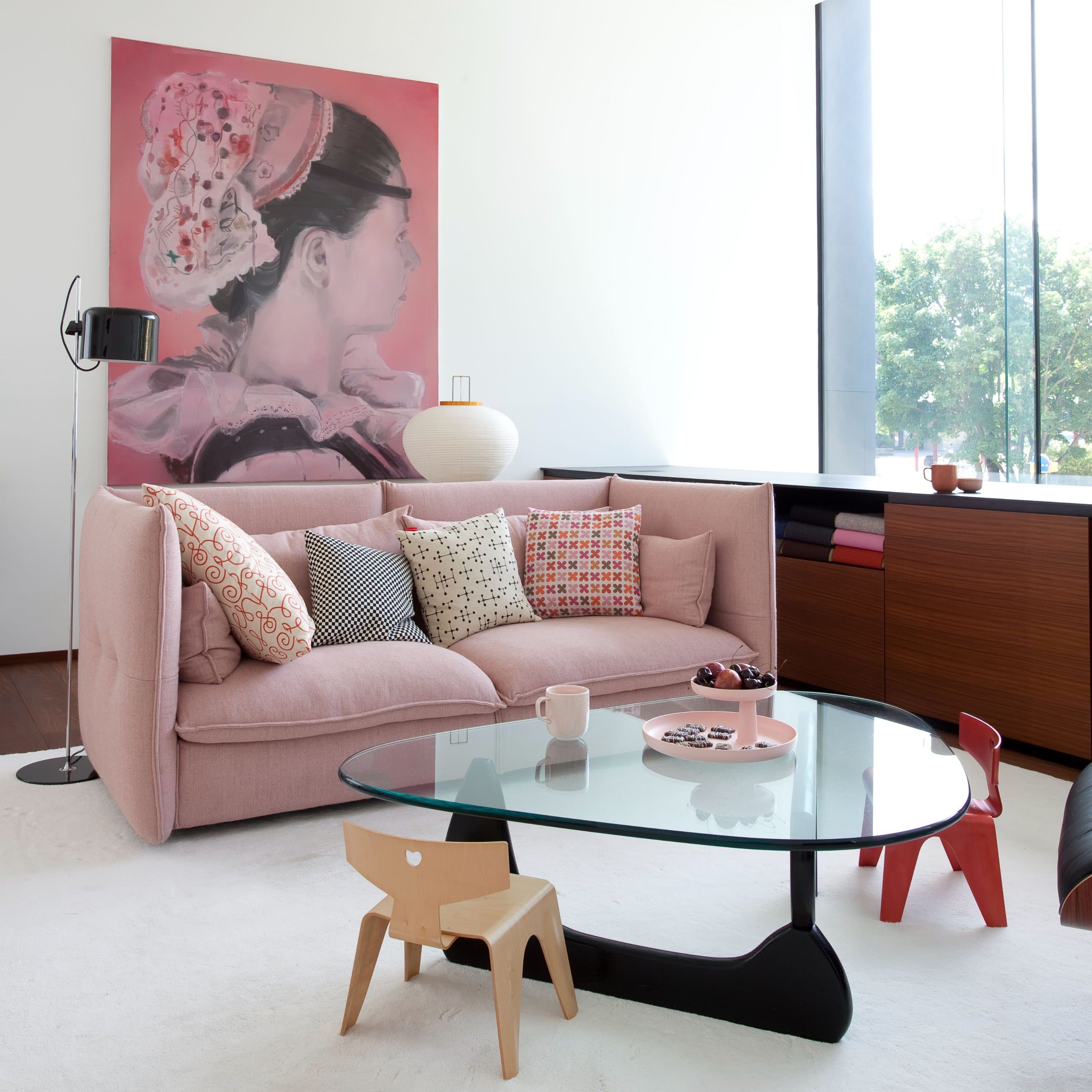 Split level systemen zijn berucht door de extra trappen die vol in het zicht staan. Maar door de keuze voor afrormosia-afwerking, net als bij de vloerbedekking, gaat er een rustgevende kracht vanuit. Samen met de grote witte wandvlakken en het koele beton zorgt het warme pakket voor een fraai contrast.