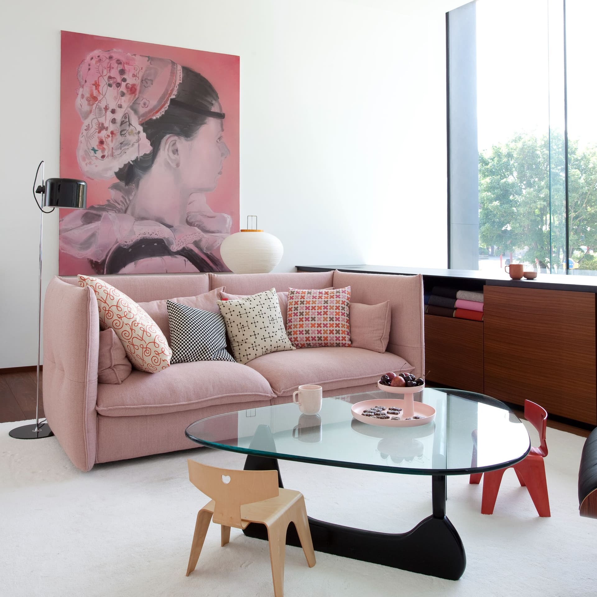 Warme tinten, afgewisseld door witte muren en gekleurde canvassen