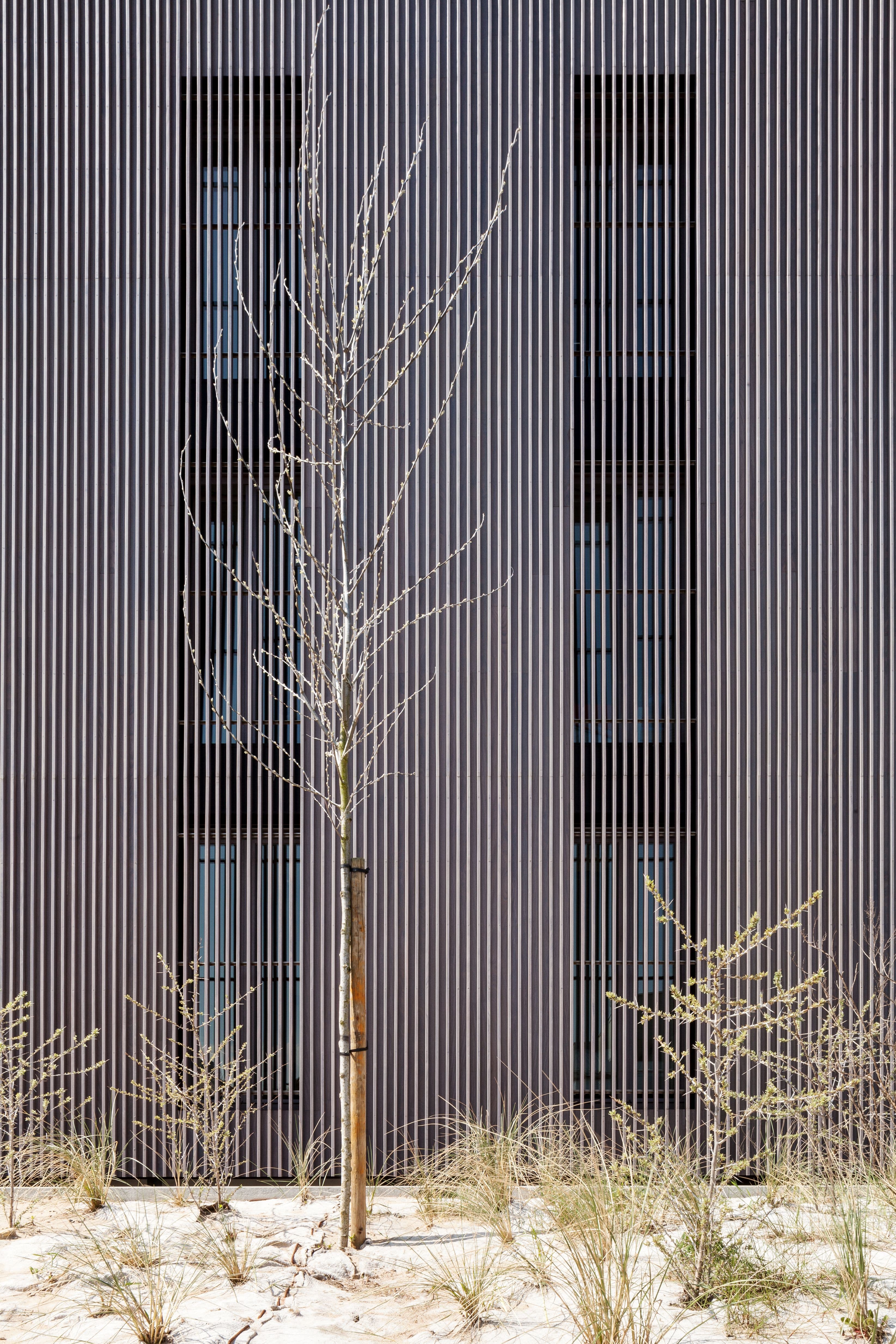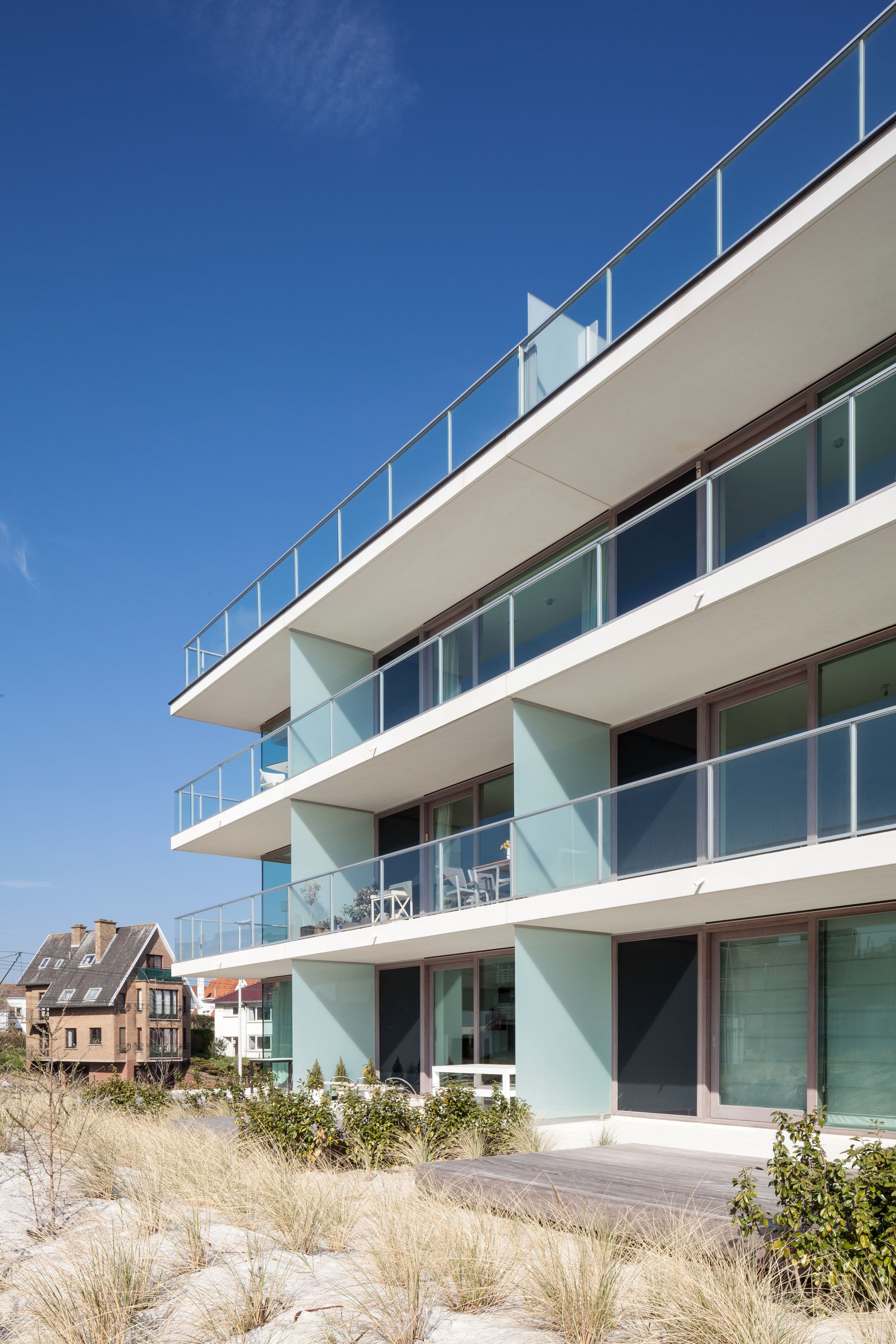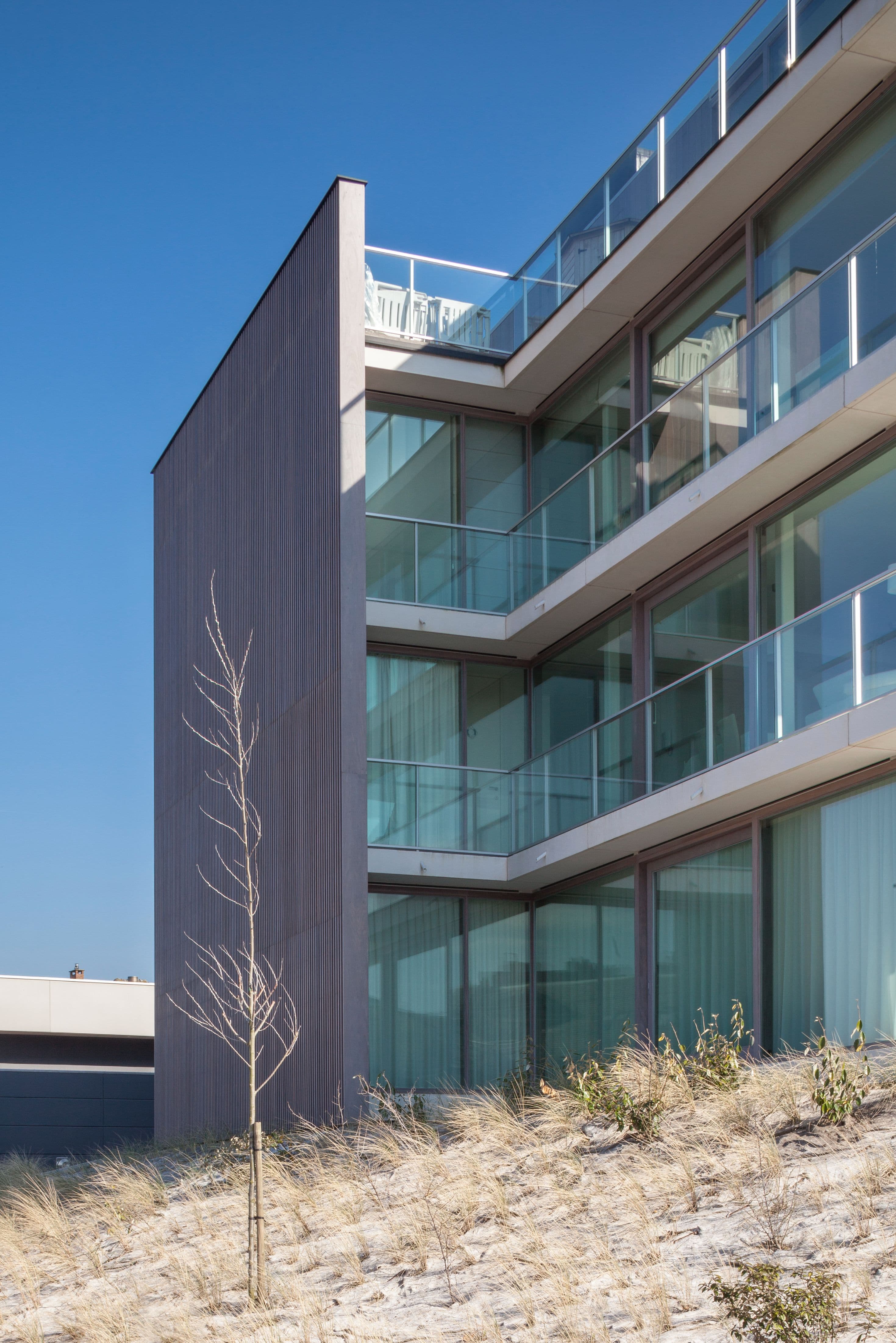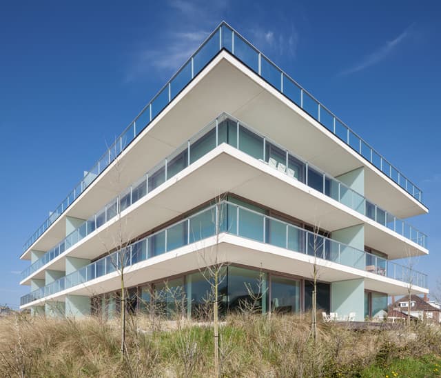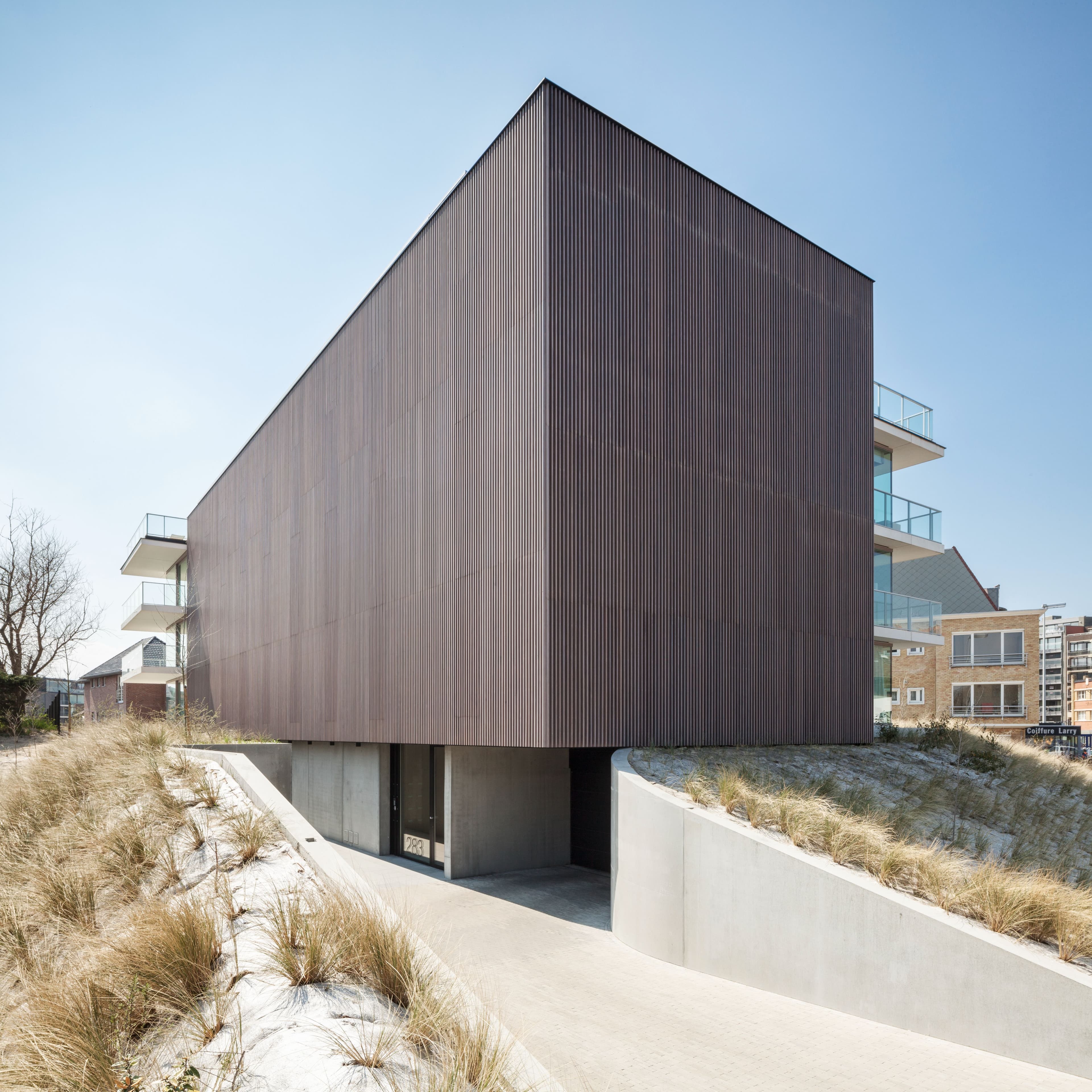 Residentie J. Prouvé past zich in de duinprofilering en staat a.h.w. ingeschoven in de helling.