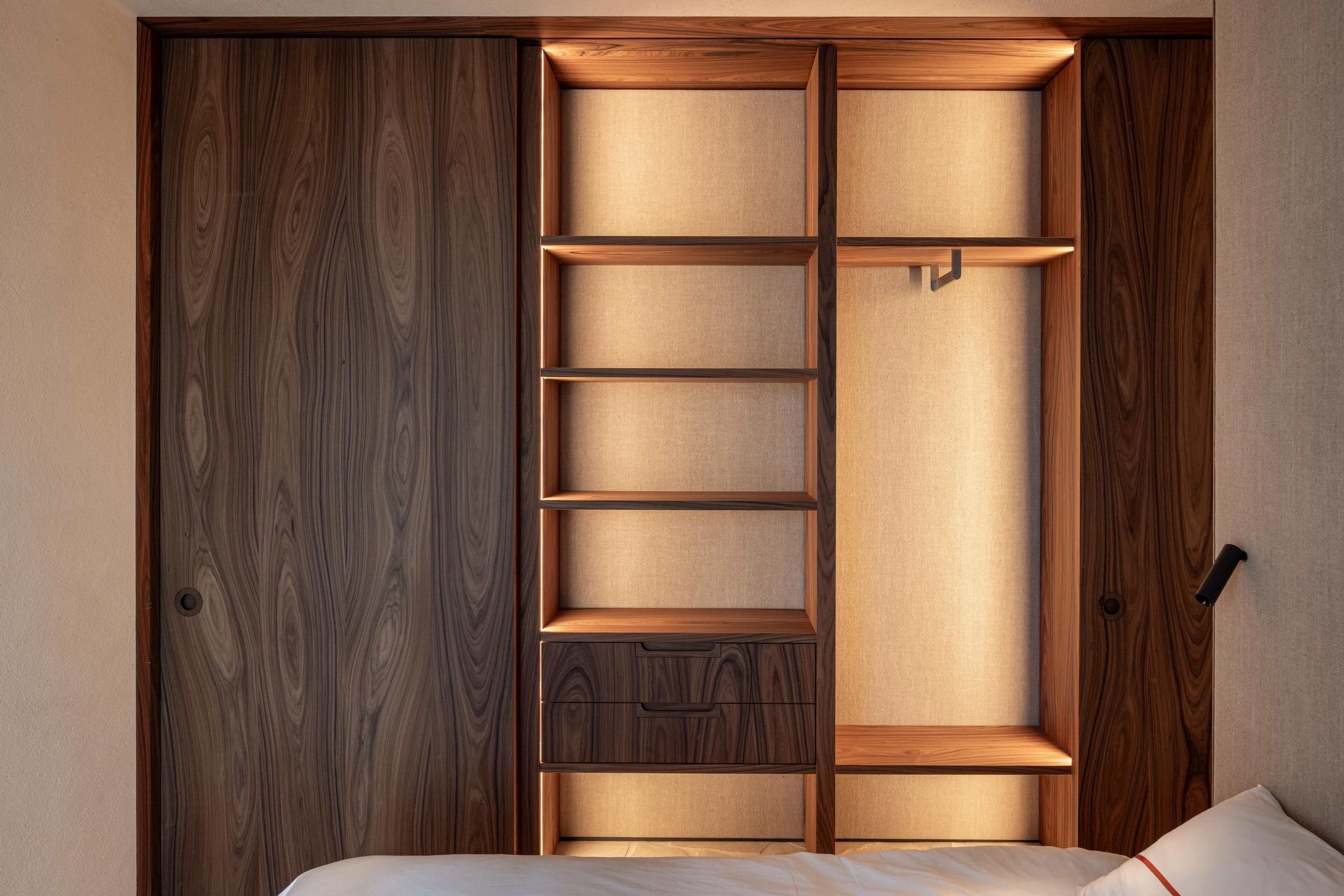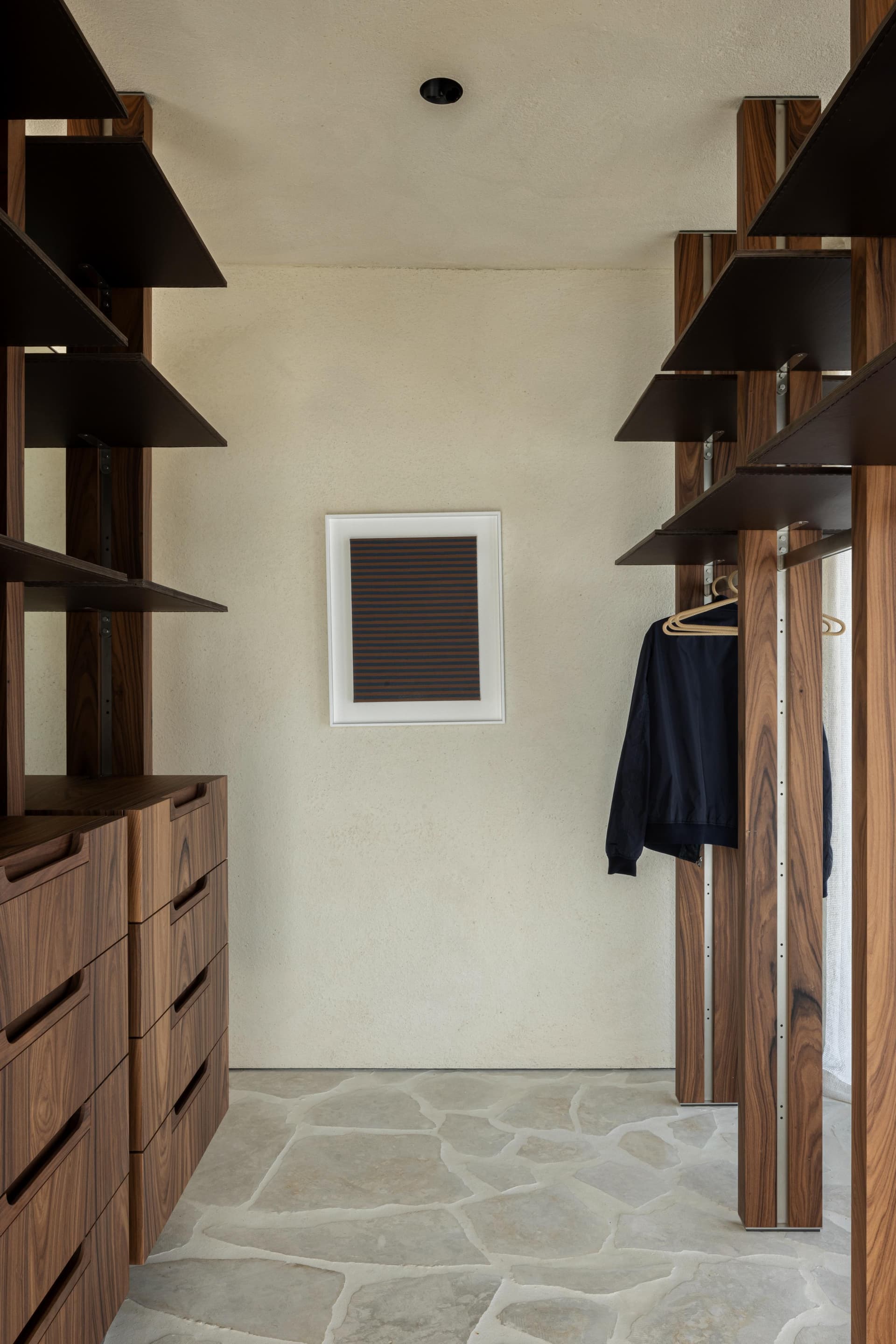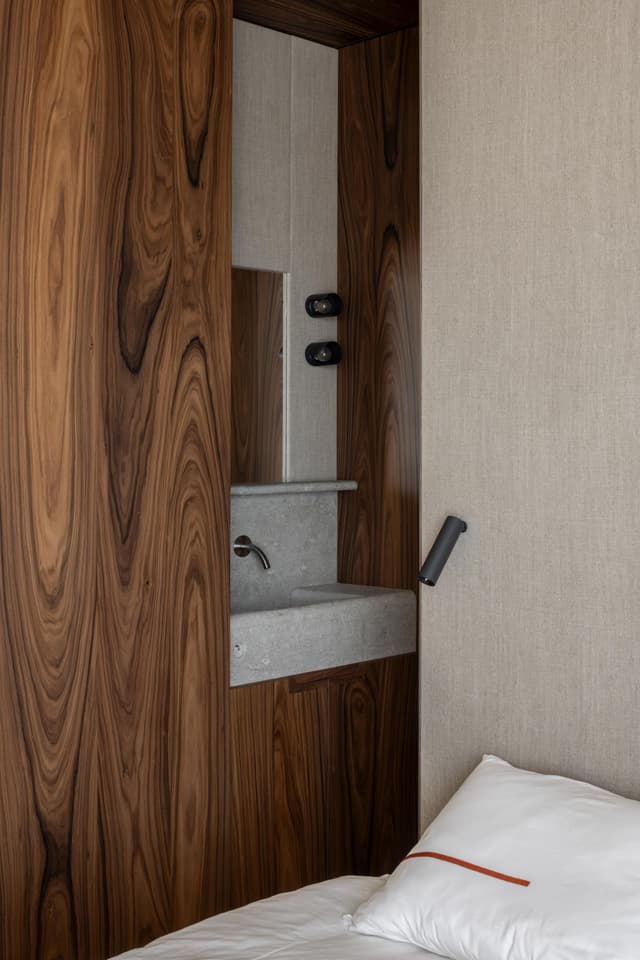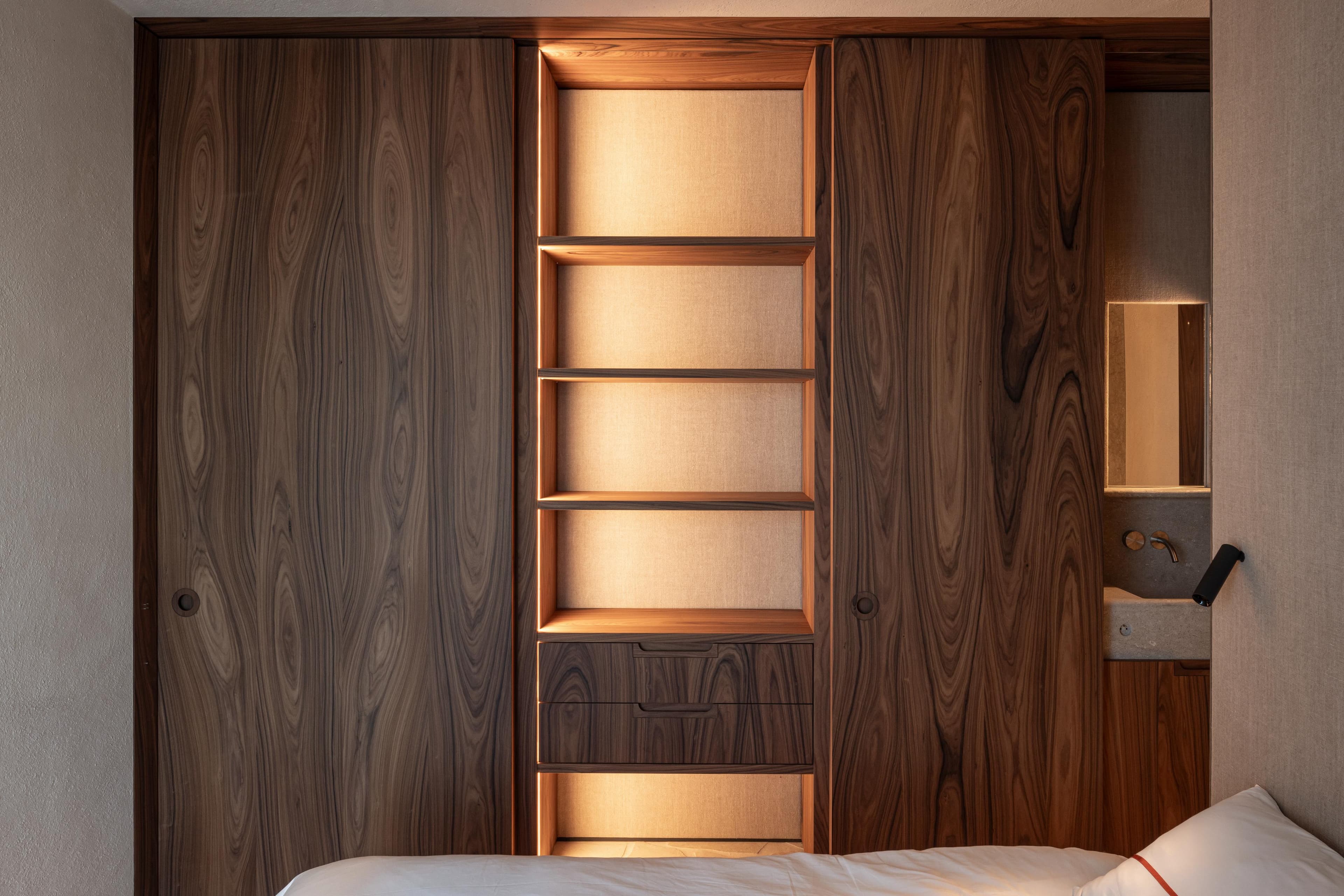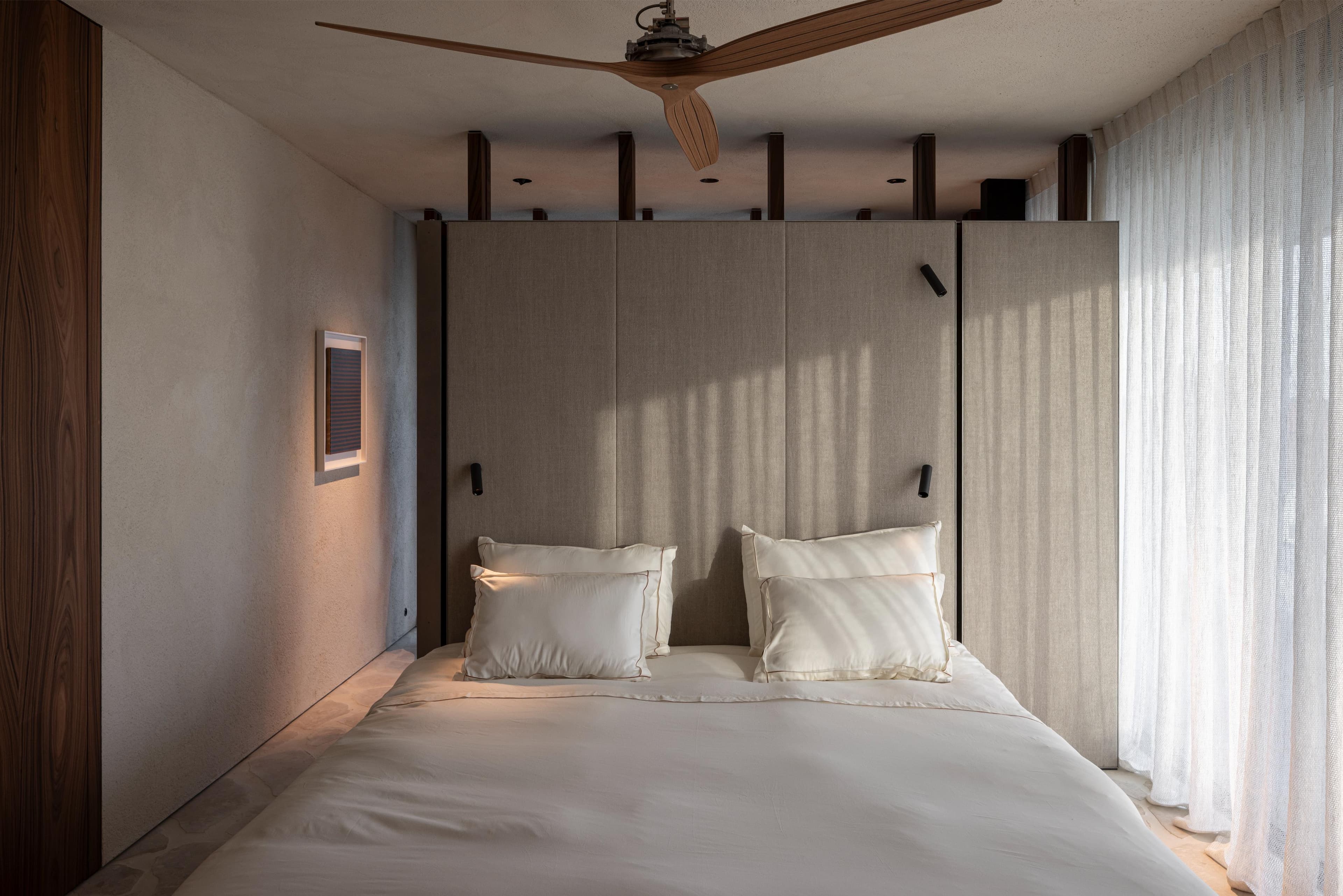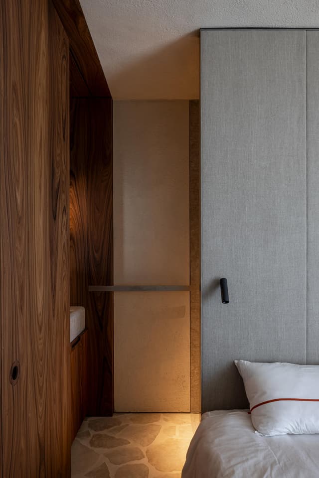 A project in a dreamy location like this doesn’t come by often: on the beach, looking out to the sea and dunes. The penthouse rises up like a beacon of light from these natural elements, with large glass windows all around establishing a connection with the dunes and the sea behind them. The floorplan was retought and the kitchen moved to the southwest to make the most of the afternoon sun. The connection to the sea is palpable throughout, including in the bedrooms of the rear, because of the floor plan’s central axis. The transition between inside, outside feels organic thanks to the materials used , including the rubble masonry from the Gobertange quarry, in a colour that is very similar to that of the dunes and sand. The design, meanwhile, was inspired by element that stand the test of time: the custom interiors were made from palisander, stainless steel and natural stone and combined with upholstered walls and solid elm furniture crafted by artisans.