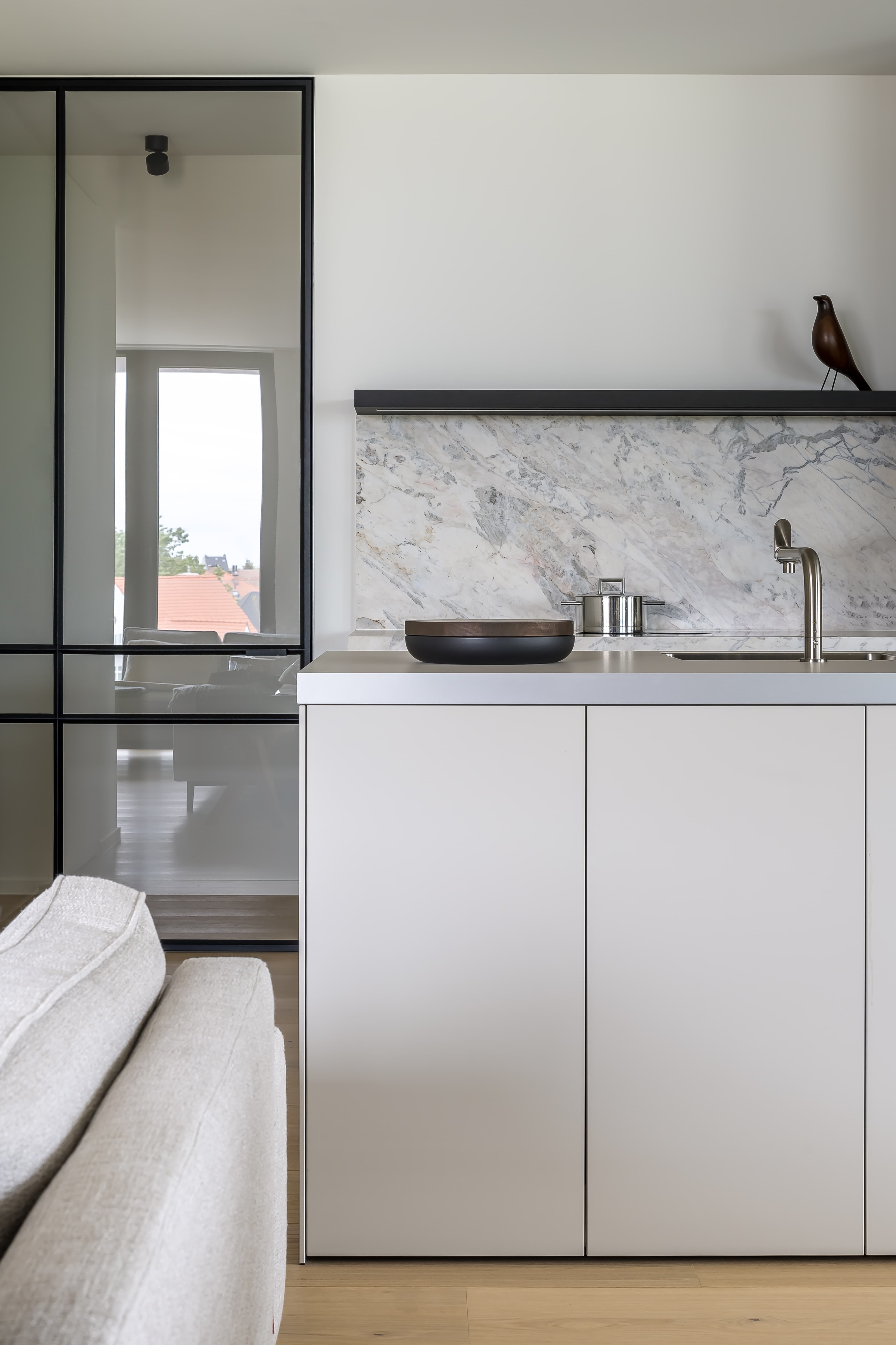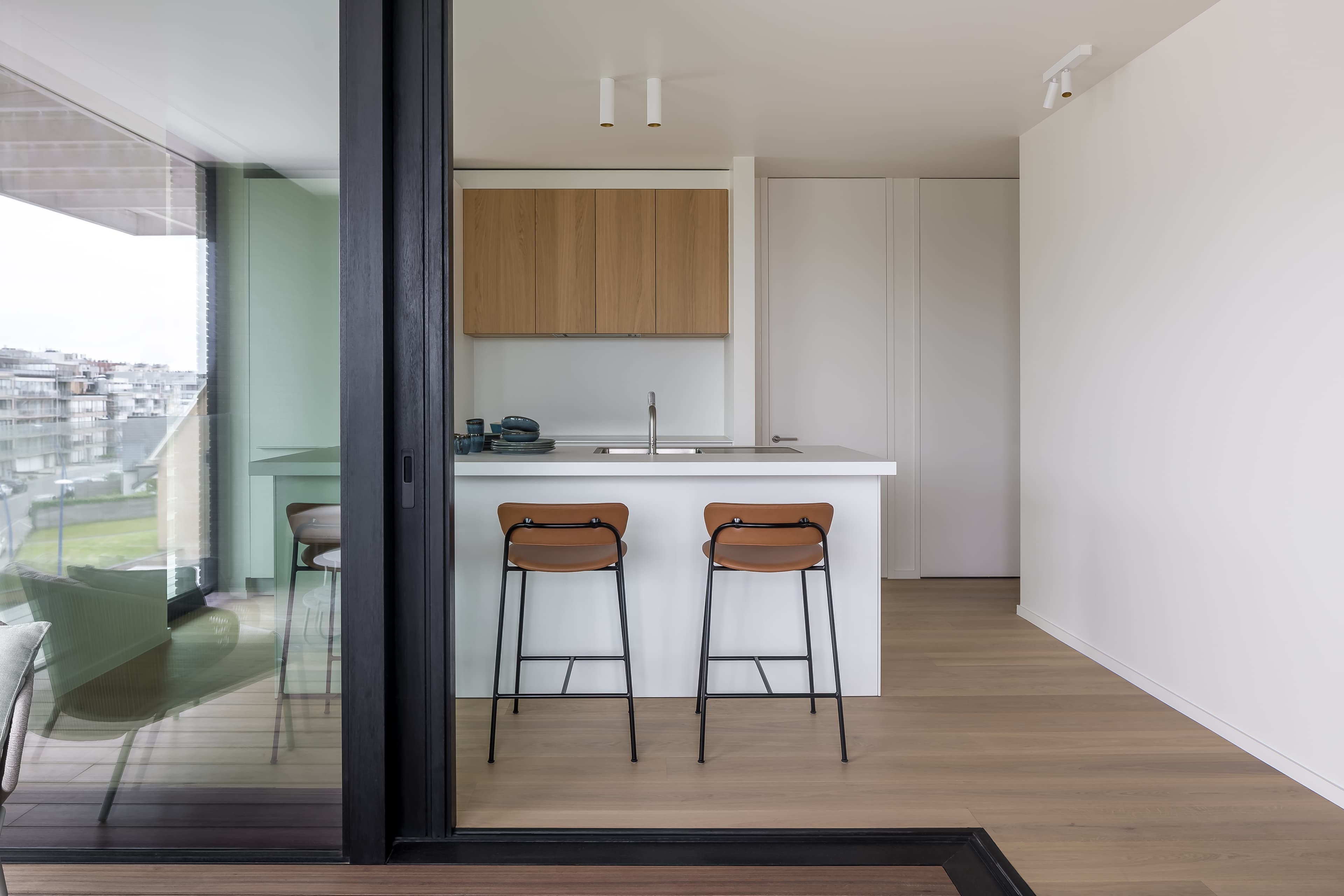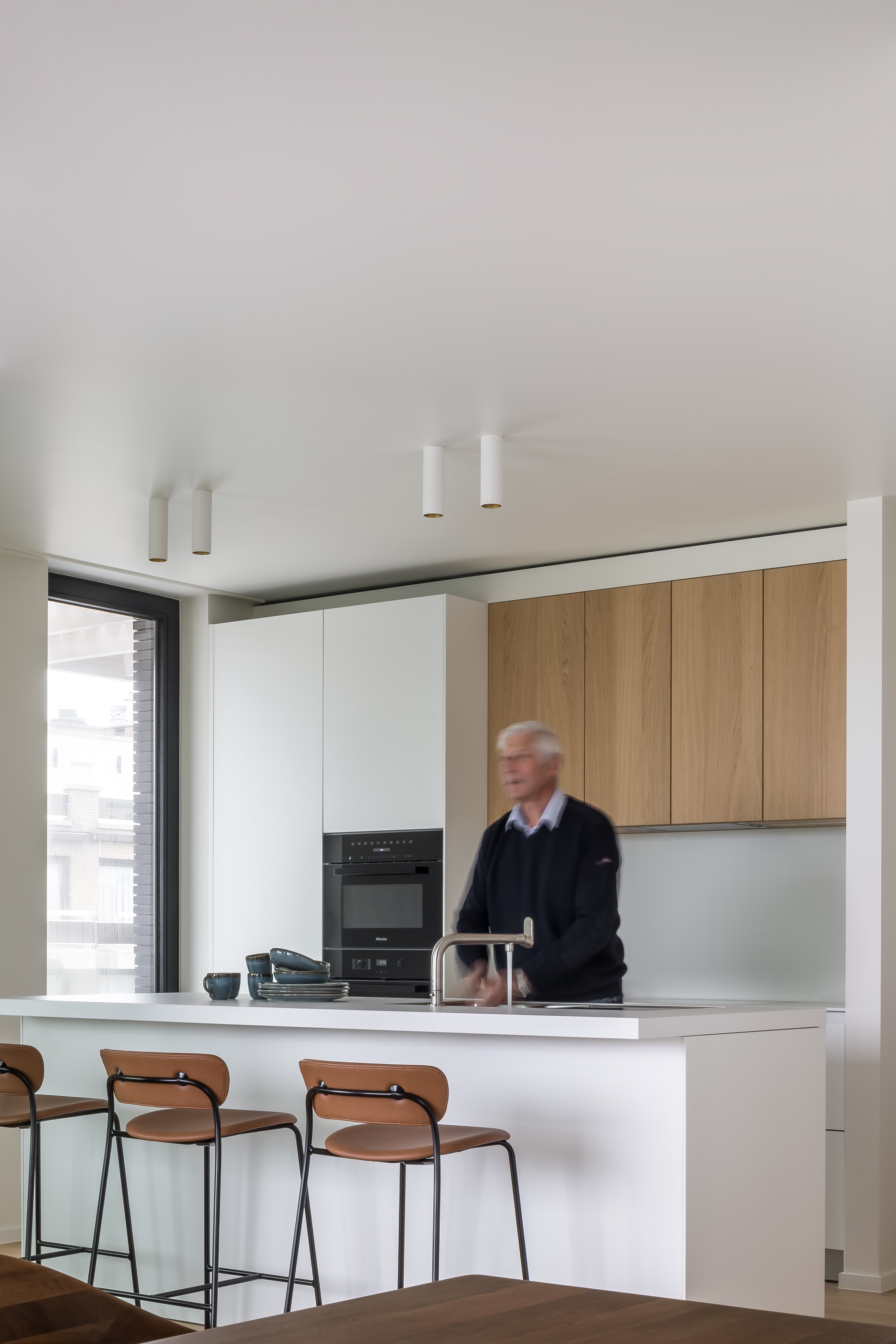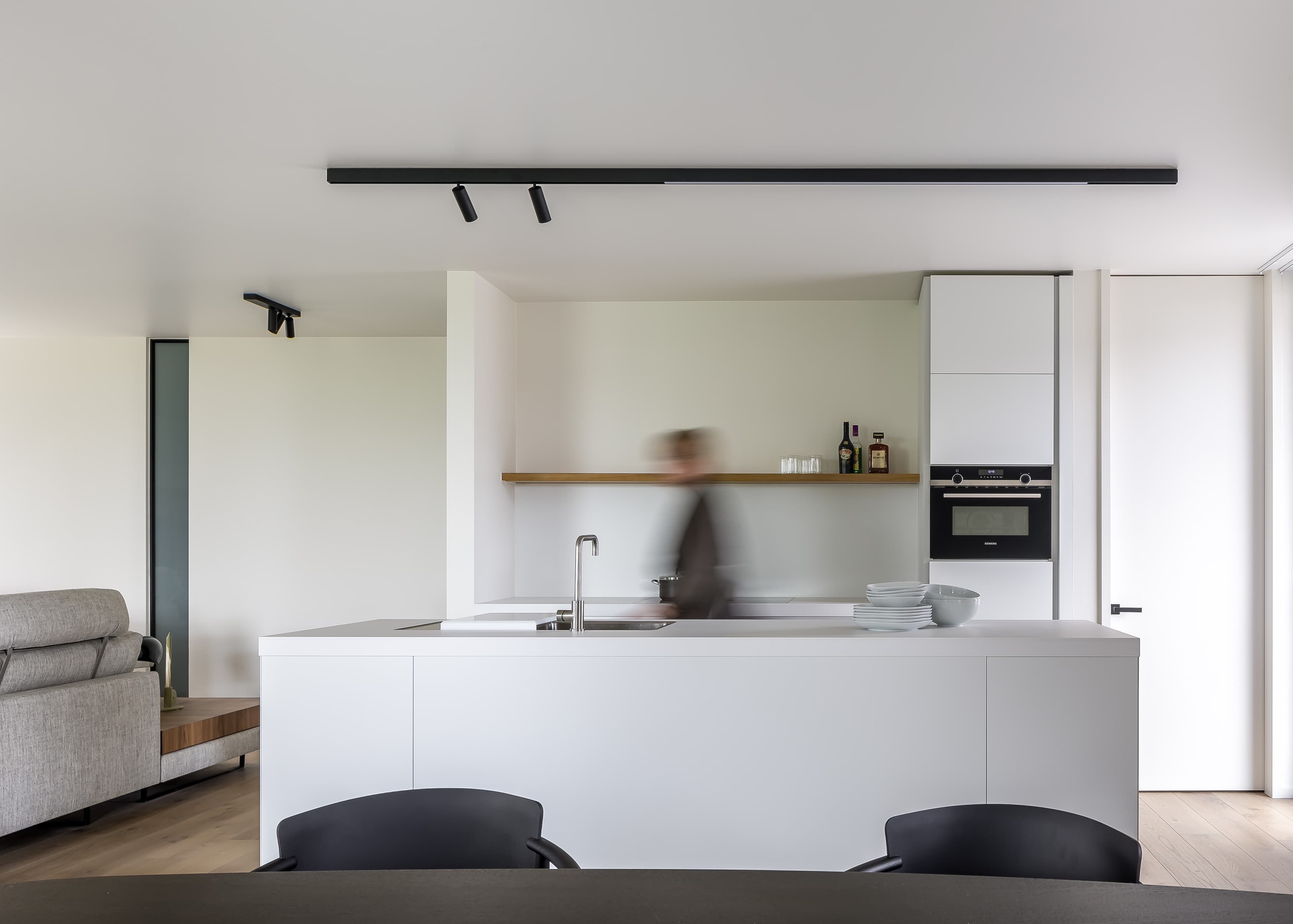 Laat uw ogen strelen door de plafondhoge deuren en de natuurlijke en hoogwaardige materialen. Van eiken parket tot volledige uitgeruste keuken van sistem.be, badkamers met Duravit sanitair en inloopdouches tot aan de camerabewaking; aan alles is gedacht en maximale aandacht geschonken. Alles staat in dienst van wooncomfort en de rust die zo karakteristiek is voor sublieme architectuur.