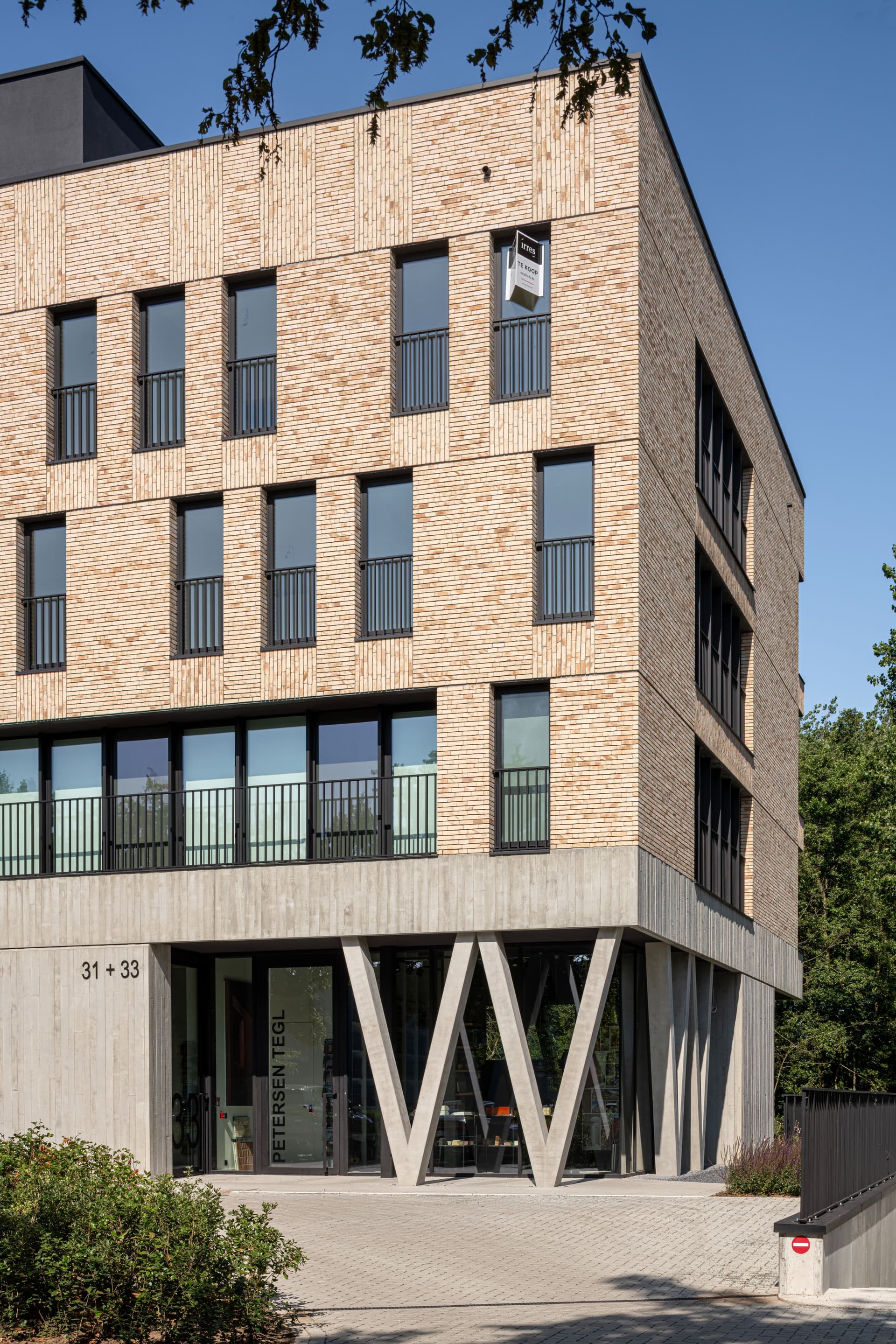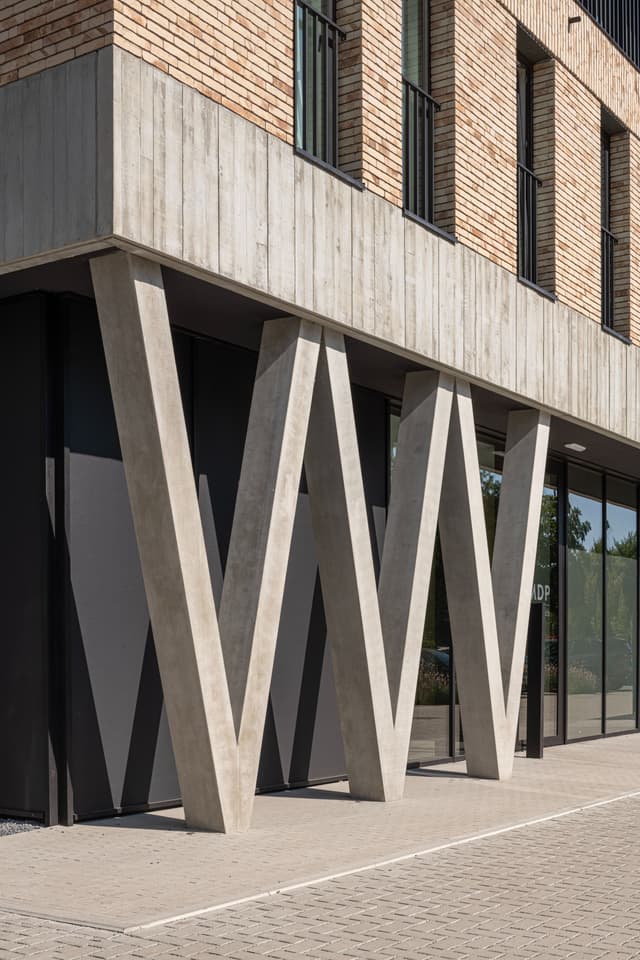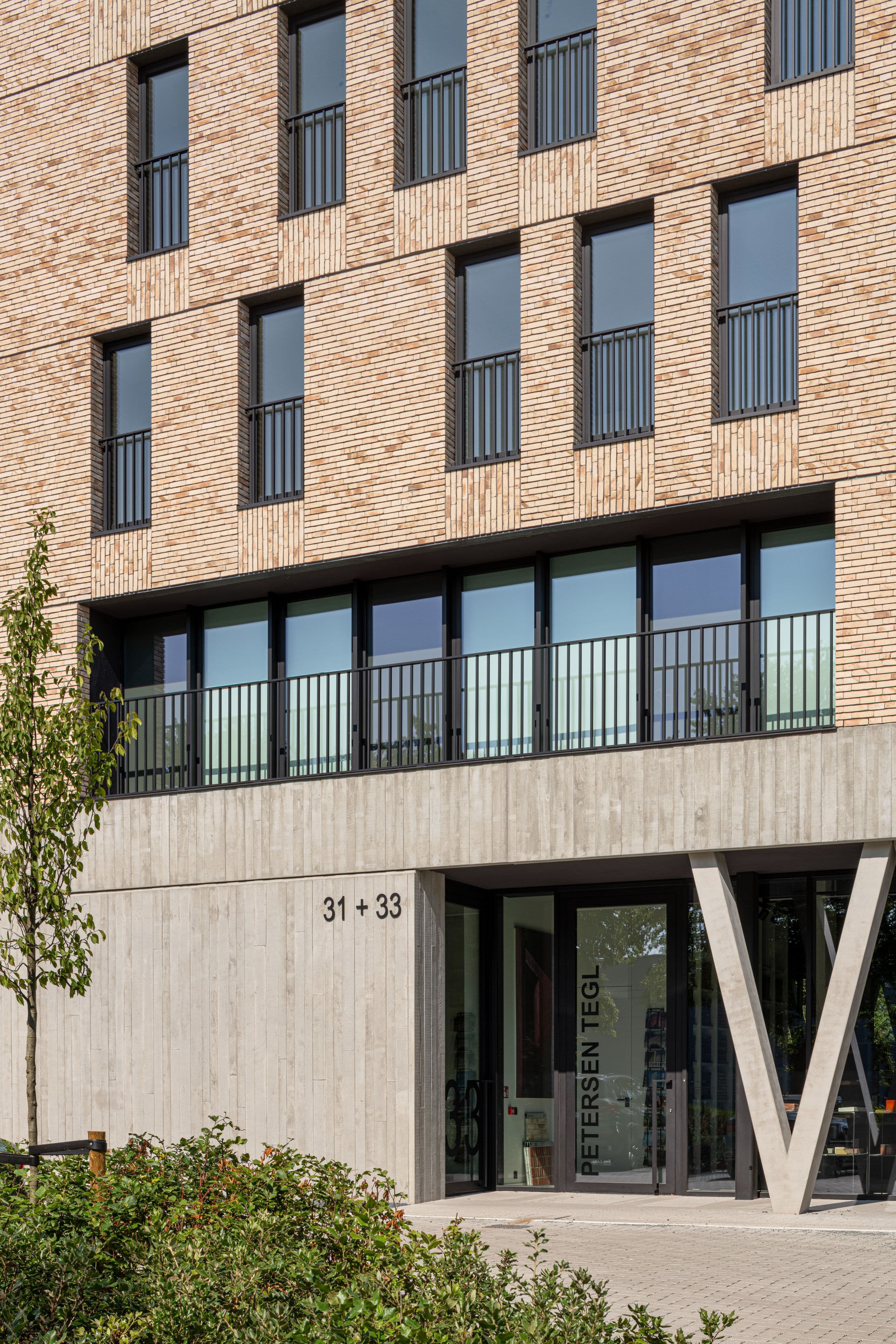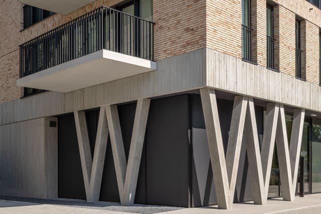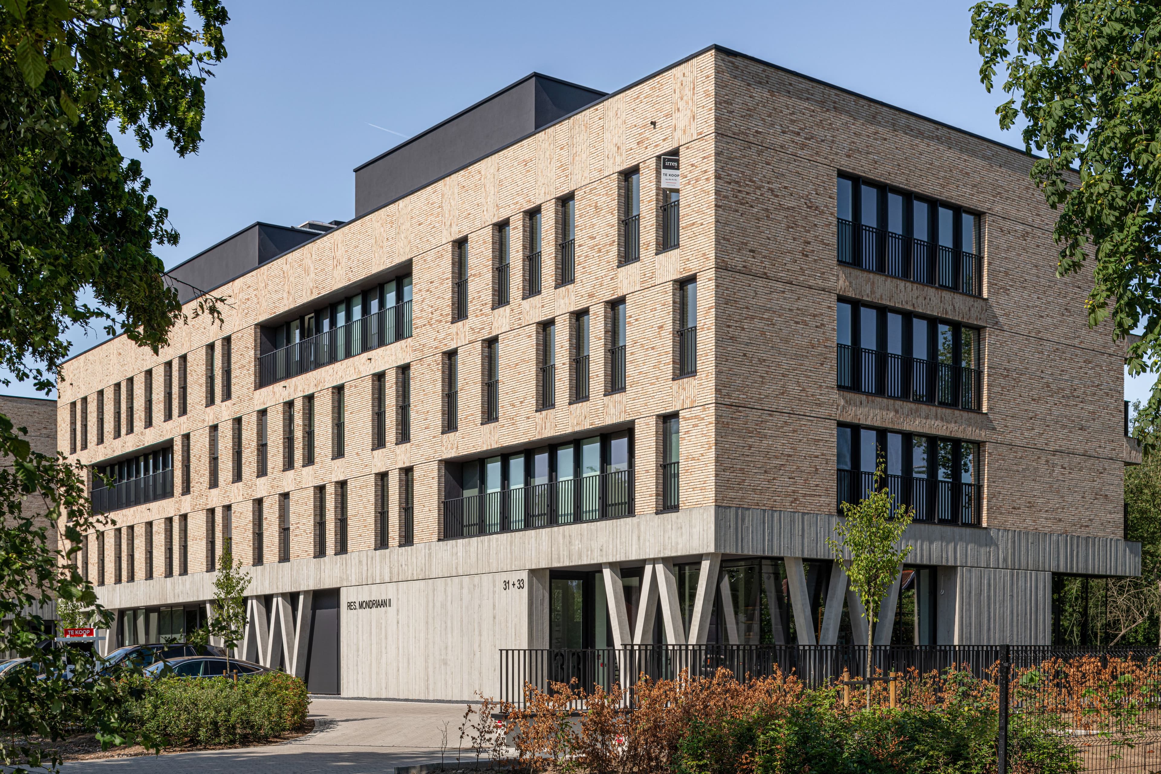 Kunstenaar Piet Mondriaan componeerde jarenlang vlakken op basis van zwarte lijnen. Op dezelfde manier werken de architecten van CAAN hier om tot abstracties van gevelsteen met beige nuances te komen. De locaties van balkons en nissen zijn weloverwogen gekozen om het framework te versterken met zwart aluminium schrijnwerk.
