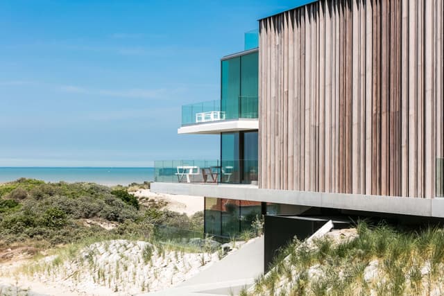 Met 5 appartementen is het geen grote residentie, maar door de fenomenale inplanning in het landschap en het brede uitzicht op de natuur, voelt het toch groots. Het combineert een ode aan de uitgesproken hedendaagse architectuur met een stevig fundament in de Oostduinkerkse duinen.