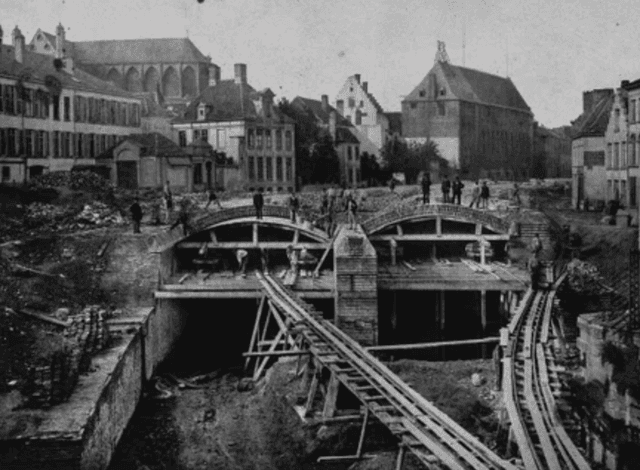 Het Zollikofer-deVigne plan (1880) zorgde in 1884 voor de overwelving van de Nederschelde tussen de Brabantdam en het Geraard de Duivelsteen . Onder andere de “Polkagang”, in 1852 een bekende winkelgalerij en voornaamste pad naar het Zuidstation, heden ten dage beter gekend als het “Glazen straatje”, verloor door dit plan aan alle betekenis door de aanleg van de Vlaanderenstraat en verkommerde.