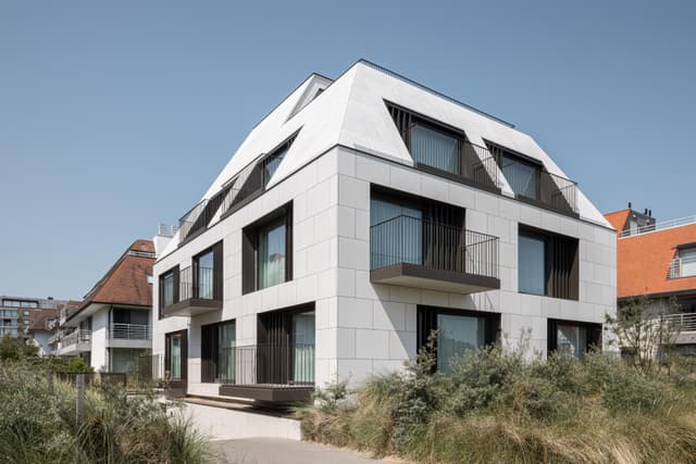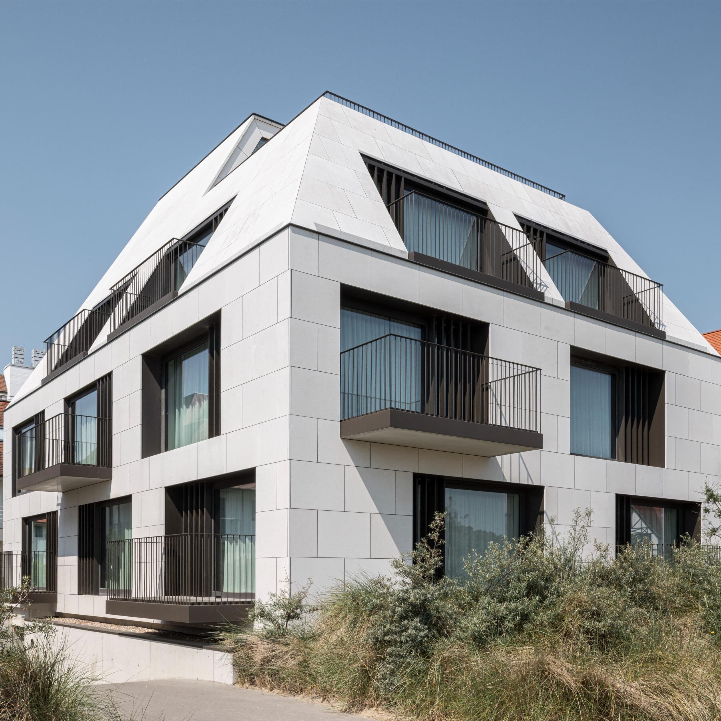 Torp - OostduinkerkeResidentie Schröder bestaat uit 5 appartementen onder eenzelfde piramidale daklijn als de buurwoningen. Zo gaat het discreet op in de omgeving. Het is een kleinschalige en zeer gestileerde residentie, ontworpen door CAAN Architecten.