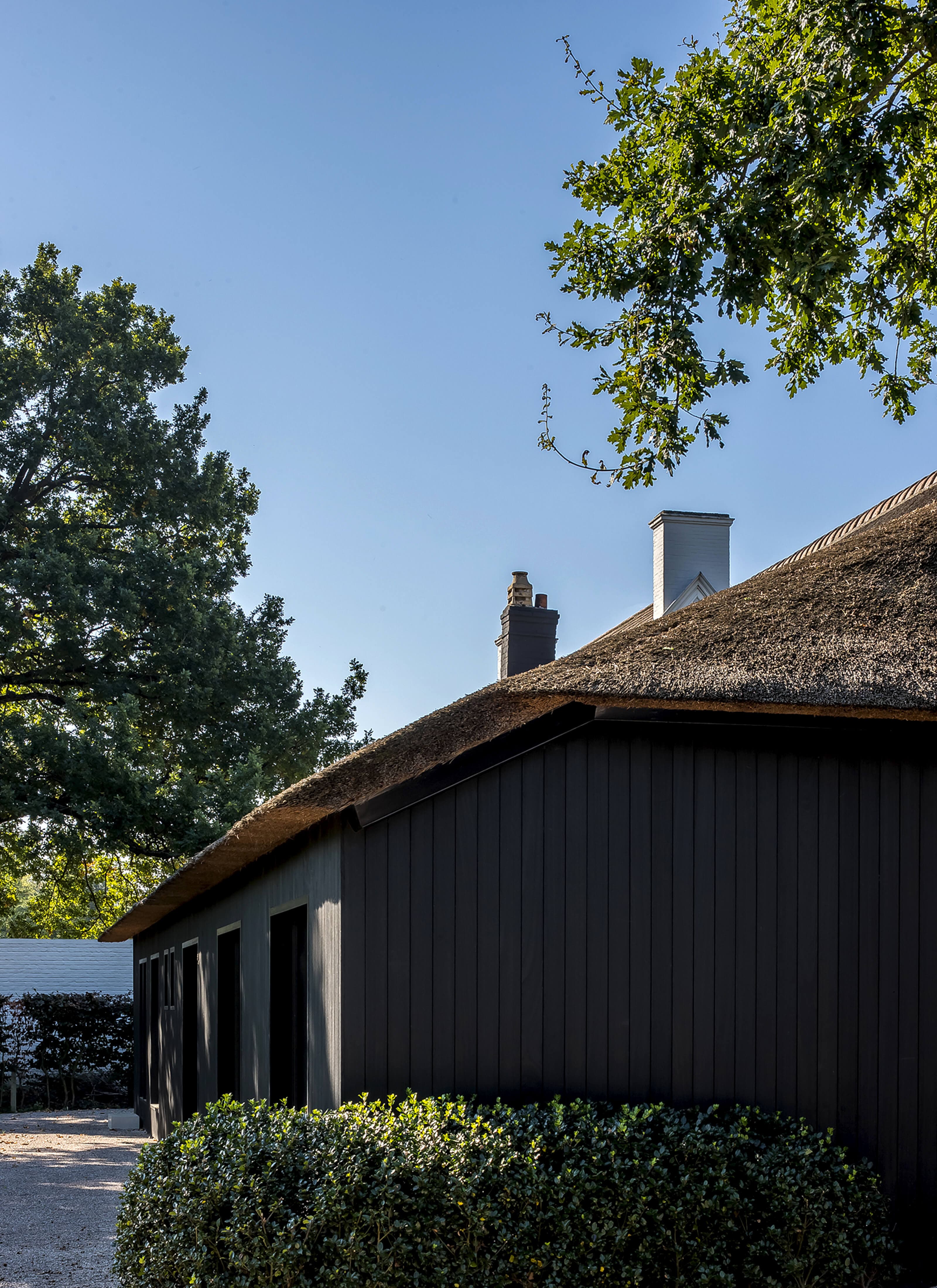 Een bezoek aan Wijndomein Valke Vleug, ontworpen door Architect Vincent van Duysen, gaf ons inspiratie. We besloten de witte bakstenen gevel te voorzien van een nieuwe schil: een nieuwe mantel voor de stijlvolle oude dame. We plaatsten extra isolatie en werkten de buitenkant af met zwart hout. Dat gaf het geheel een fraai en uitgesproken cachet.